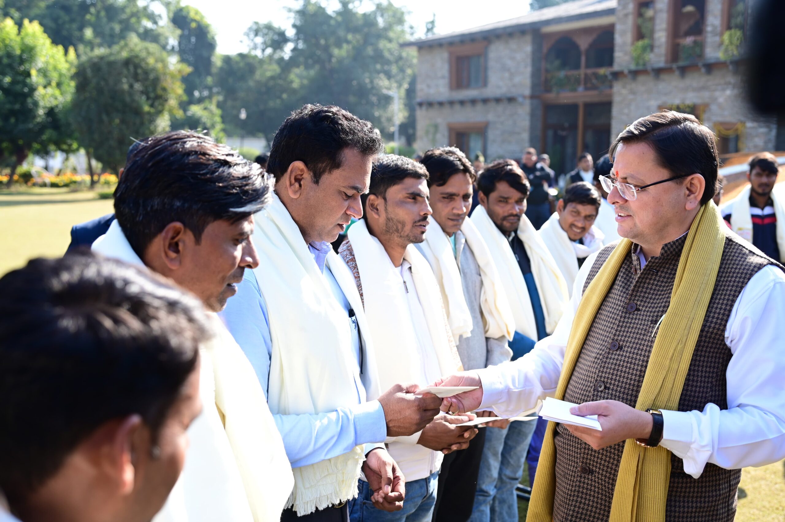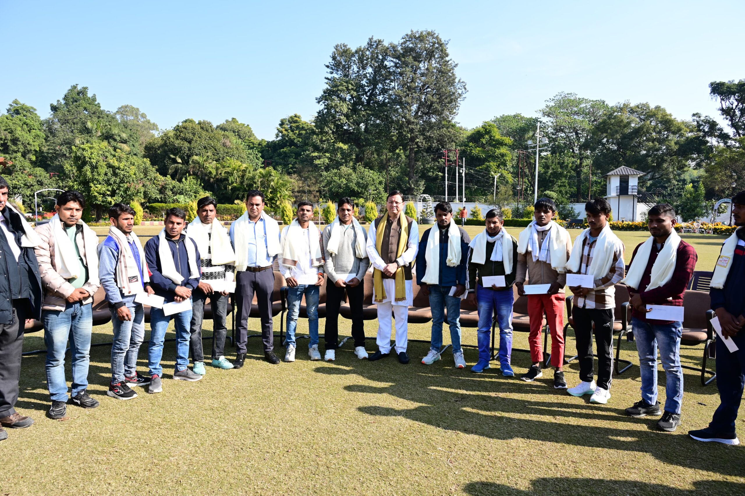देहरादून : मुख्यमंत्री पुष्कर सिंह धामी ने गुरूवार को मुख्यमंत्री आवास में उत्तरकाशी के सिलक्यारा रेस्क्यू ऑपरेशन में टनल की खुदाई में अहम भूमिका निभाने वाले 12 रैट माइनर्स को शॉल ओढ़ाकर सम्मानित किया और सभी रैट माइनर्स को 50-50 हजार रूपये के सम्मान राशि के चेक भी प्रदान किये।