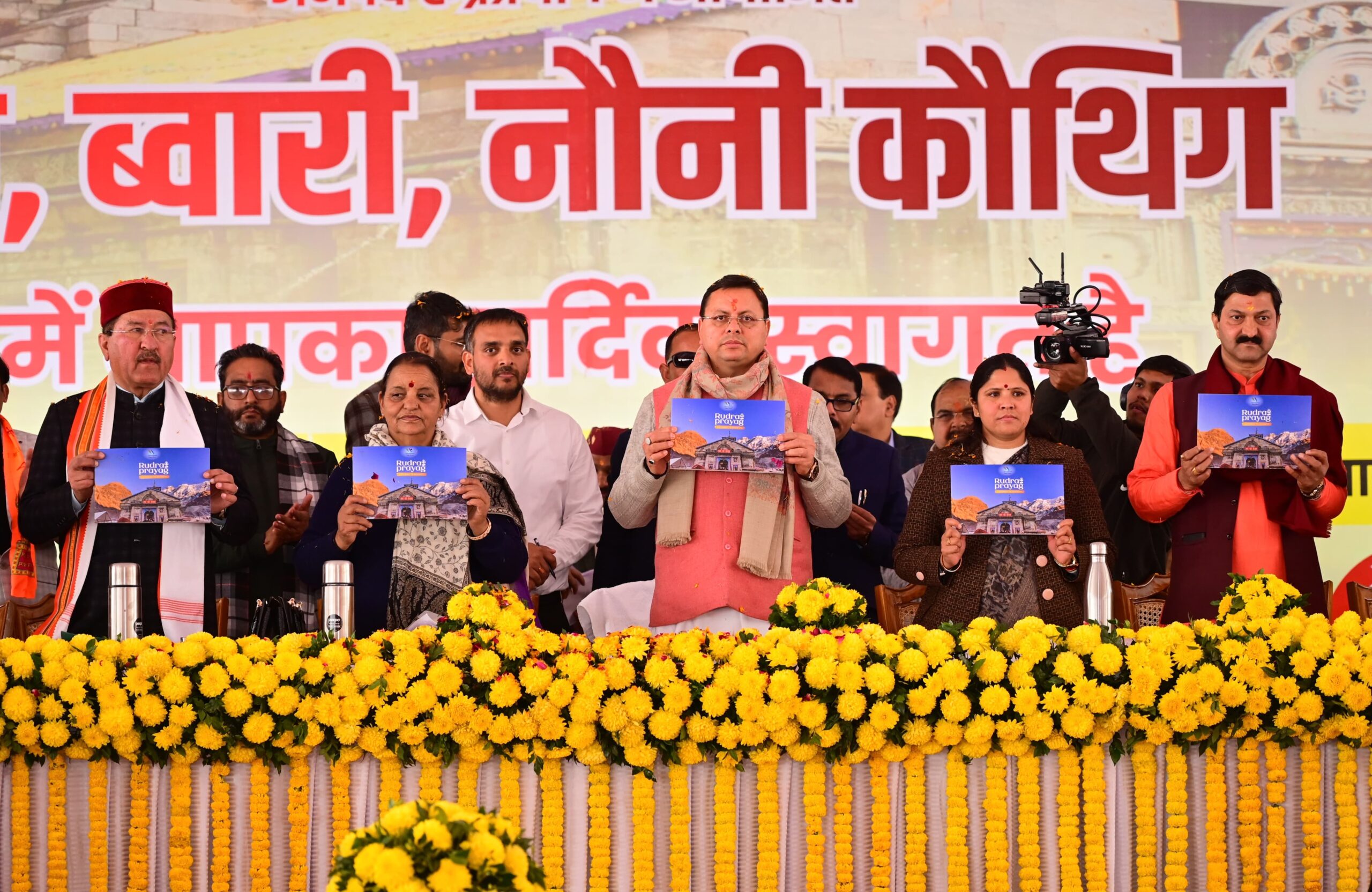 रुद्रप्रयाग। मुख्यमंत्री पुष्कर सिंह धामी ने रविवार को जनपद रुद्रप्रयाग में नारी शक्ति वंदन महोत्सव के अंतर्गत आयोजित ब्वै, ब्वारी, नौनी कौथिग में किया प्रतिभाग किया। मुख्यमंत्री ने इस अवसर पर ₹467 करोड़ 78 लाख की 27140 योजनाओं का लोकार्पण एवं शिलान्यास किया। इस दौरान मुख्यमंत्री ने विभिन्न विभागों के स्टॉल का अवलोकन कर महिलाओं के साथ संवाद किया। कार्यक्रम के दौरान मुख्यमंत्री ने रुद्रप्रयाग पर्यटन विभाग की ओर से तैयार कॉफ़ी टेबल बुक का विमोचन किया। इस दौरान मुख्यमंत्री ने दुग्ध विभाग एवं सीएसआर के माध्यम से संचालित अत्याधुनिक एम्बुलेंस को हरी झंडी दिखाई। कार्यक्रम के दौरान मुख्यमंत्री ने जनपद के विकास के लिए विभिन्न घोषणाएं भी की।