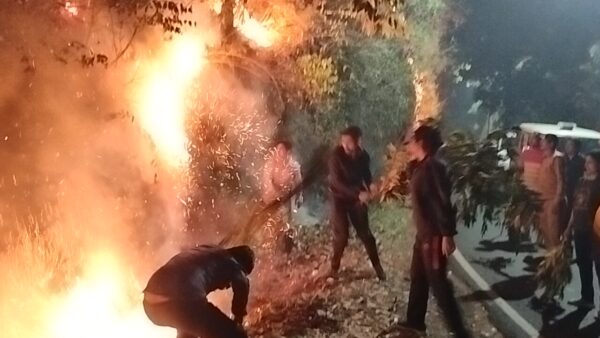 - जनपद स्तरीय अधिकारियों और अग्निशमन मशीनरी के साथ रात्रि को पहुंचे टेका मार्ग के जंगल में लगी आग को बुझाने