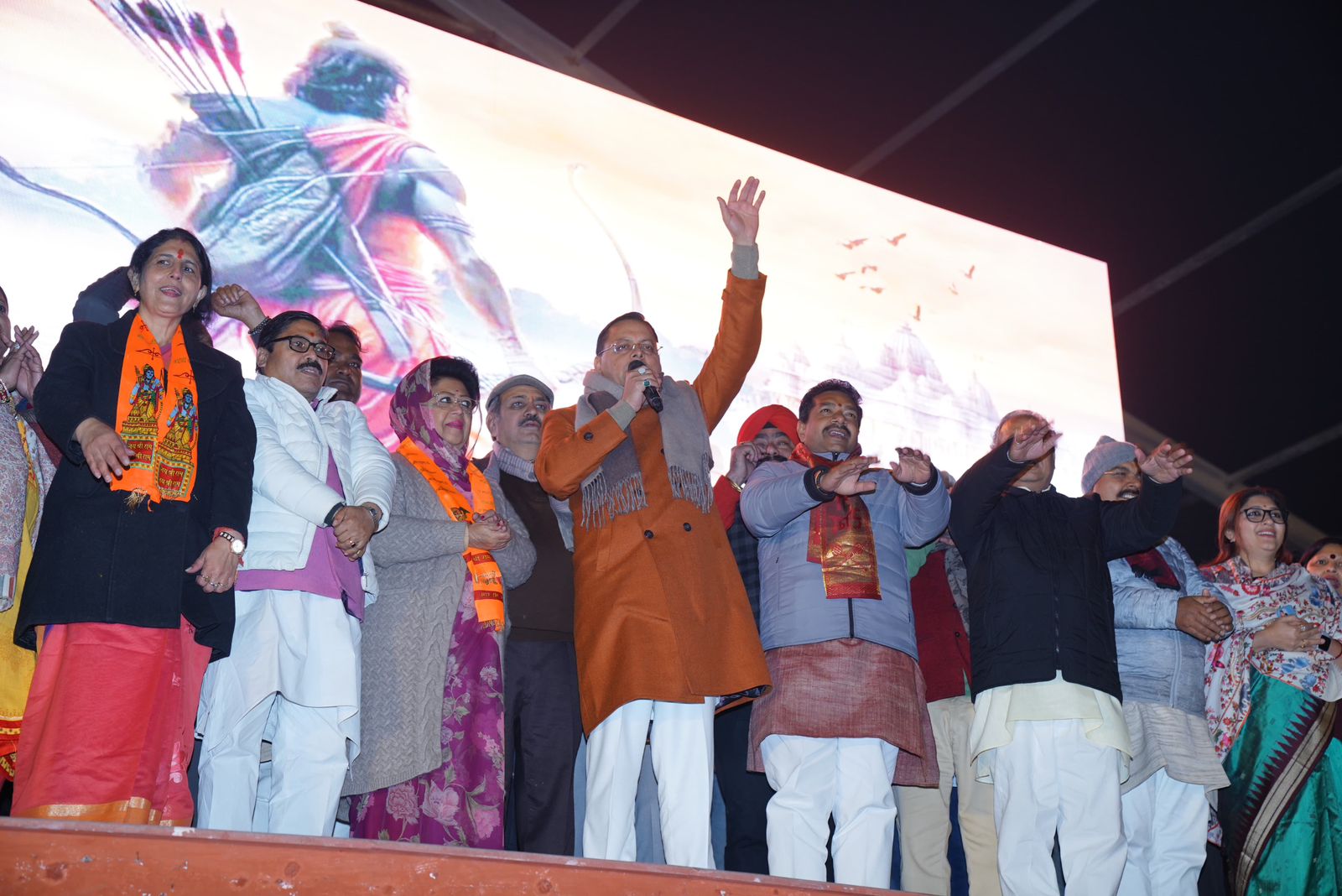 मुख्यमंत्री पुष्कर सिंह धामी ने कहा कि लंबे इंतजार के बाद भगवान श्री राम मंदिर की प्राण  प्रतिष्ठा का शुभ अवसर हम सबको देखने को मिल रहा है। सौभाग्य भरे क्षण के हम सभी साक्षी होंगे।  उन्होंने कहा बड़ी संख्या में माताओ बहनों ने  दीपोत्सव कार्यक्रम में आकर भगवान श्री राम के प्रति अपनी आस्था दिखाई है। जन-जन के सहयोग एवं भक्ति के कारण 1.5 लाख से अधिक दीप प्रज्वलित किए गए हैं। मुख्यमंत्री ने कहा कि हम राम की कृपा से इस भव्य दीपोत्सव में आए हैं। उन्होंने कहा प्रधानमंत्री नरेंद्र मोदी के नेतृत्व में राम मंदिर बनाए जाने का मार्ग प्रशस्त हुआ है। आज उन्हीं के नेतृत्व में हमारा देश निरंतर प्रगति के पथ पर अग्रसर है। इस दौरान कार्यक्रम में सांसद माला राज्यलक्ष्मी शाह, भाजपा संगठन महामंत्री अजेय कुमार, एवं अन्य लोग मौजूद रहे।