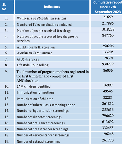 | क्र.सं. | संकेतक | 17 सितंबर से लाभ प्राप्त करने वाले लोगों की कुल संख्या |