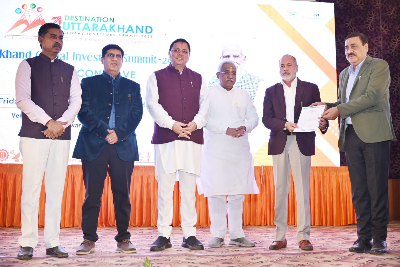 मुख्यमंत्री ने प्रधानमंत्री नरेन्द्र मोदी का जिक्र करते हुये कहा कि प्रधानमंत्री के संकल्प-वर्ष 2025 तक देश की अर्थव्यवस्था को 5 ट्रिलियन बनाने के के क्रम में हमारे राज्य ने भी अपनी जीएसडीपी को आगामी 5 वर्षों में दोगुना करने का लक्ष्य निर्धारित किया है, जिसके क्रम में हमने ’’सशक्त उत्तराखण्ड मिशन’’ प्रारंभ किया है। दिसंबर में आयोजित होने वाली ’’उत्तराखण्ड ग्लोबल इनवेस्टर्स समिट-2023’’ इसी मिशन का एक विशिष्ट अंग है। उन्होंने कहा कि हमने प्रधानमंत्री से भी प्रेरणा ली, जिन्होंने गुजरात राज्य के मुख्यमंत्रित्व काल में गुजरात राज्य में ब्राईबैं्रट गुजरात की शुरूआत की थी, तब लोगों का उतना रूझान नहीं था, लेकिन आज गुजरात राज्य उद्योग के क्षेत्र में दुनिया का मॉडल बना हुआ है। उसी से प्रेरणा लेकर डेस्टिीनेशन उत्तराखण्ड शुरू किया गया है। उन्होंने कहा कि इस समिट के लिये अभी तक दो लाख करोड़ रूपये के करार निवेशकों के साथ हो चुके हैं तथा निवेशकों का निवेश करने का क्रम जारी है।