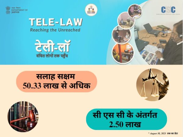 Home » Blog » टेली-लॉ कार्यक्रम से 50.33 लाख से अधिक लाभार्थियों को मिली कानूनी सलाह, टेली-लॉ कार्यक्रम से जुड़े ढाई लाख सीएससी