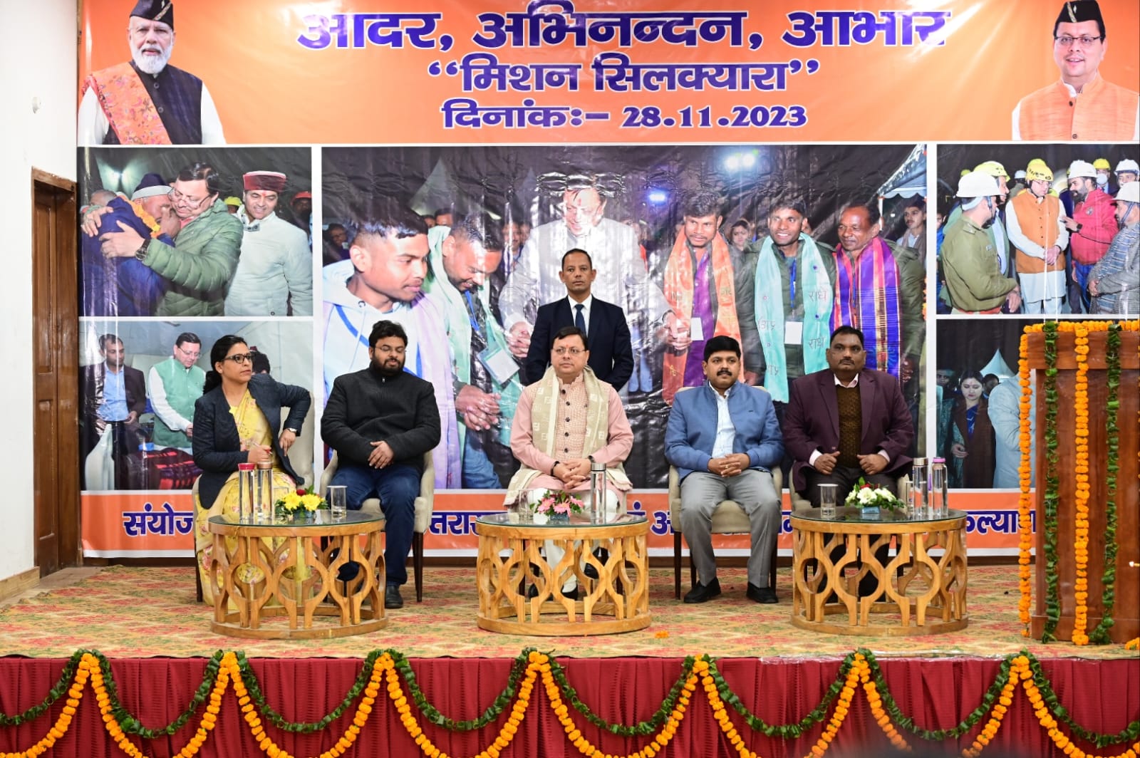 देहरादून : मुख्यमंत्री कैम्प कार्यालय स्थित मुख्य सेवक सदन में आयोजित ‘आदर अभिनन्दन, आभार मिशन सिलक्यारा’’ कार्यक्रम में श्रमिक संगठनों द्वारा मुख्यमंत्री का आभार व्यक्त किया गया। मुख्यमंत्री पुष्कर सिंह धामी ने कहा कि उत्तरकाशी के सिलक्यारा सुरंग से 41 श्रमिकों को सकुशल निकालने के लिए सिलक्यारा रेस्क्यू में लगी केन्द्र एवं राज्य सरकार की सभी एजेंसियों द्वारा सराहनीय कार्य किया गया। इस मुश्किल घड़ी में श्रमिकों ने जो धैर्य रखा वो हम सभी को हमेशा प्रेरित करने का काम करेगा।