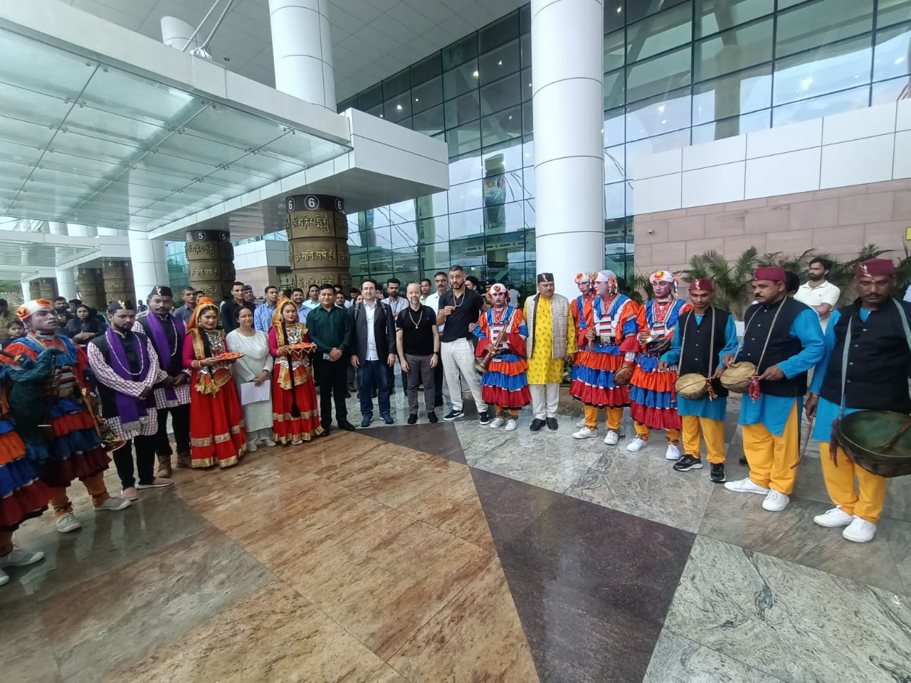 देहरादून : जी-20 सम्मेलन में प्रतिभाग करने पहुंचे प्रतिनिधिमंडल के सदस्यों का स्थानीय परंपराओं के साथ किया गया भव्य स्वागत।आज जौलीग्रांट एयरपोर्ट पर प्रातः की फ्लाईट से जी 20 सम्मेलन में प्रतिभाग करने ब्राजील से तीन प्रतिनिधिमंडल के सदस्य पहुंचे जिनका स्थानीय संस्कृति एवं लोक परंपराओं से ढोल दमाऊ के साथ भव्य स्वागत किया गया। इस अवसर पर उप जिलाधिकारी डोईवाला शैलेंद्र सिंह नेगी, उप जिलाधिकारी टिहरी शालिनी पंत, तहसीलदार सोहन सिंह रांगड़, सहित स्थानीय कलाकार जिला प्रशासन एवं पुलिस के अधिकारी कार्मिक उपस्थित रहे।
