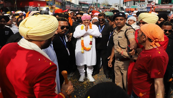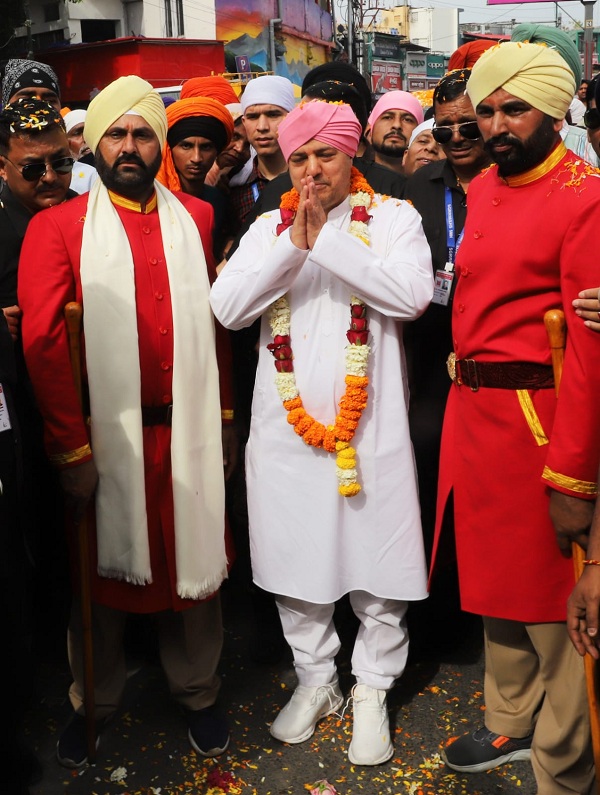 देहरादून। श्री दरबार साहिब, देहरादून के सज्जादे गद्दी नशीन श्रीमहंत देवेन्द्र दास जी महाराज की अगुआई में सोमवार को ऐतिहासिक नगर परिक्रमा निकली। फूल बरसांदी जांवा राह तेरे फुल बरसांदी जांवा……., किवें करां, किवें करा तेरी सेवा मालका किवें करां…..जे बाबा मैं खुद ही आंवा, जे बाबा मैं खुद ही आंवा मैं किस्मद दा माडा मालका किवें करां… जैसे गुरु भक्ति के भजनों से नगर परिक्रमां में संगत रमी रही। जहां-जहां से नगर परिक्रमा निकली दूनवासियों ने तहेदिल से संगतों का स्वागत किया। नगर परिक्रमा के दौरान रास्ते भर दूनवासी श्री गुरु राम राय जी महाराज व श्रीमहंत देवेन्द्र दास जी महाराज के जयकारे लगाते रहे। श्री गुरु राम राय जी महाराज के जन्मदिवस (श्री झण्डे जी आरोहण के तीसरे दिन) के तीसरे दिन आयोजित होने वाली एतिहासिक नगर परिक्रमा का स्वागत करने के लिए दूनवासी साल भर इंतजार करते हैं। नगर परिक्रमा के रूट पर हर जगह संगत का ज़ोरदार स्वागत किया गया। भजन कीर्तन के बीच श्रद्धालुओं को श्री दरबार साहिब के सज्जादे गद्दी नशीन श्रीमहंत देवेन्द्र दास जी महाराज ने आशीर्वाद दिया। दूनवासियों ने ऐतहासिक नगर परिक्रमा के रूट पर जगह जगह लंगर व खान-पान की समुचित व्यवस्था सहित आकर्षक स्वागत व्यवस्था की।