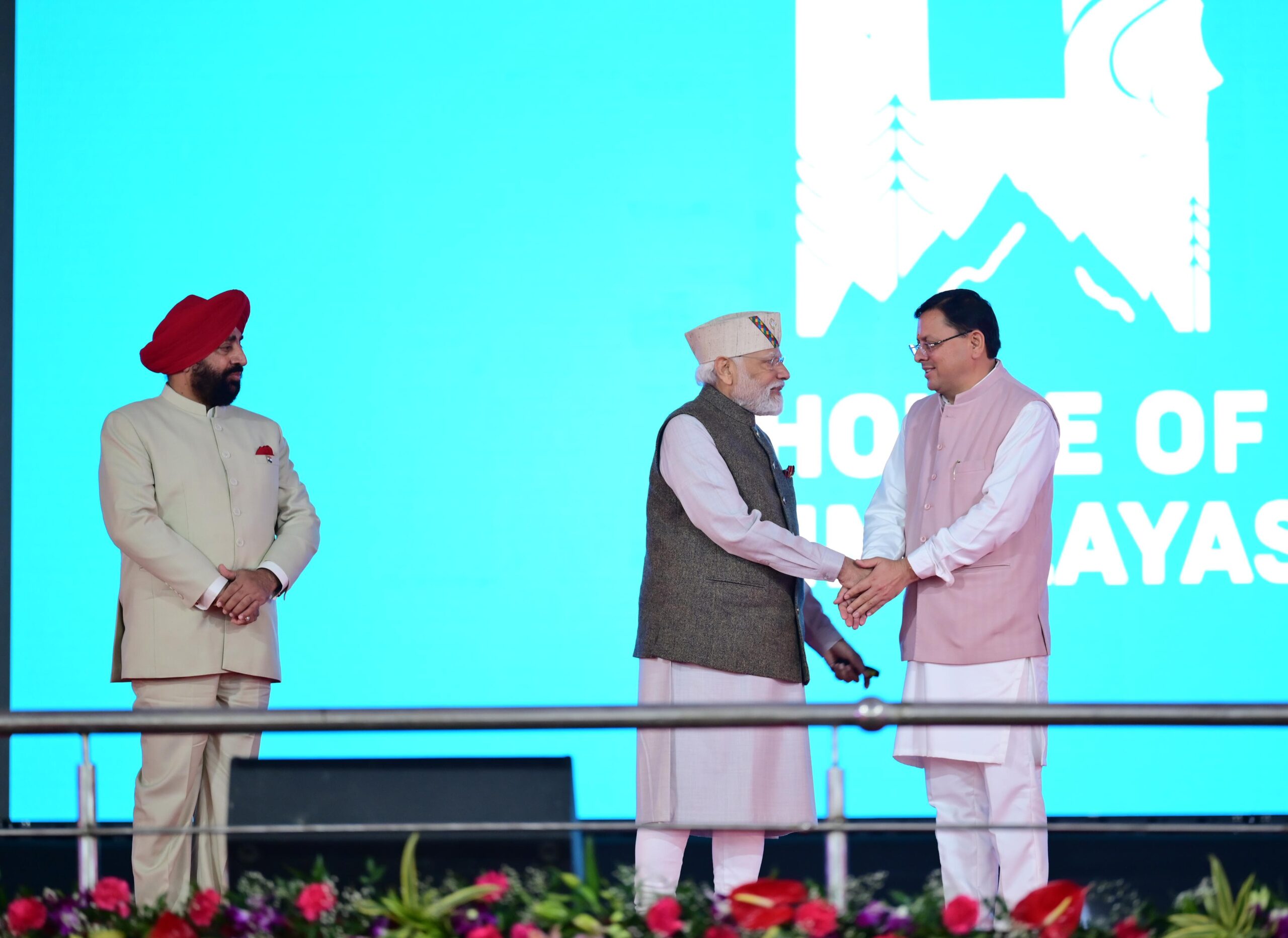 देहरादून : प्रधानमंत्री नरेन्द्र मोदी ने आज वन अनुसंधान संस्थान, देहरादून, उत्तराखंड में आयोजित ’उत्तराखंड वैश्विक निवेशक शिखर सम्मेलन 2023’ का उद्घाटन किया। प्रधानमंत्री नरेन्द्र मोदी ने प्रदर्शनी का अवलोकन भी किया और ग्राउंड ब्रेकिंग वॉल का अनावरण किया। प्रधानमंत्री मोदी ने सशक्त उत्तराखंड पुस्तक और ब्रांड हाउस ऑफ हिमालयाज भी लॉन्च किया। शिखर सम्मेलन का विषय ’शांति से समृद्धि’ है।