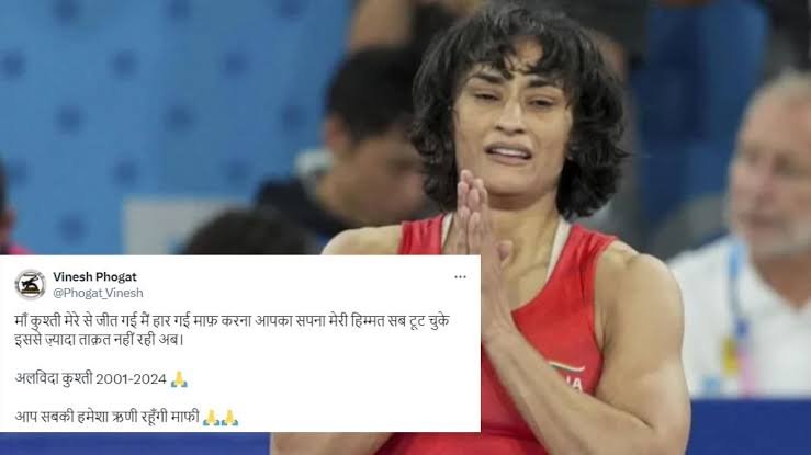 सोशल मीडिया पर एक भावुक पोस्ट में विनेश ने अपना दुख व्यक्त करते हुए कहा कि कुश्ती ने उन्हें हरा दिया है और वह अपनी सारी हिम्मत खो चुकी हैं। उन्होंने लिखा, “माँ कुश्ती मेरे से जीत गई मैं हार गई माफ़ करना आपका सपना मेरी हिम्मत सब टूट चुके इससे ज़्यादा ताक़त नहीं रही अब। अलविदा कुश्ती 2001-2024, आप सबकी हमेशा ऋणी रहूँगी माफी”।
