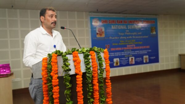 देहरादून। श्री गुरु राम राय विश्वविद्यालय में स्कूल आफ यौगिक साइंस एवं नैचुरोपैथी एवं आईसीपीआर नई दिल्ली के सहयोग से एक दिवसीय राष्ट्रीय सेमिनार का आयोजन किया गया। राष्ट्रीय सेमिनार में देश के 15 राज्यों से 500 योग शोधार्थियों ने आनलाइन एवं आफलाइन प्रतिभाग किया। कार्यक्रम में उपस्थित 300 योग शोधार्थियों में से 40 शोधार्थियों ने योग से जुड़े विभिन्न विषयों पर अपने शोधपत्र प्रस्तुत किए। 10वें अन्तर्राष्ट्रीय योग दिवस के उपलक्ष्य में एसजीआरआरयू में राष्ट्रीय सेमिनार का आयोजन किया गया। श्री गुरु राम राय विश्वविद्यालय के प्रेसिडेंट श्रीमहंत देवेन्द्र दास जी महाराज ने सभी योग शोधार्थियों एवं राष्ट्रीय सेमीनार के आयोजन सदस्यों को शुभकामनाएं प्रेषित की।