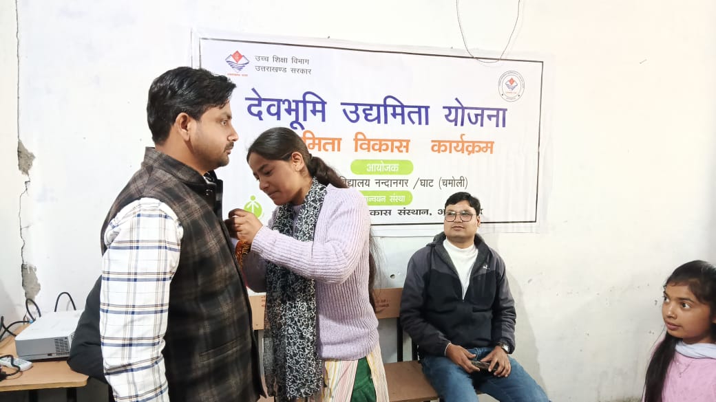 नंदानगर : शहीद जगदीश प्रसाद पुरोहित राजकीय महाविद्यालय नंदानगर में 12 दिवसीय उद्यमिता विकास कार्यक्रम का हुआ शुभारंभ। 11 मार्च 2024 को शहीद जगदीश प्रसाद पुरोहित राजकीय महाविद्यालय नंदानगर (घाट) में देवभूमि उद्यमिता योजना के अंतर्गत 12 दिवसीय उद्यमिता विकास कार्यक्रम का उद्घाटन किया गया। इस कार्यक्रम में महाविद्यालय के 45 छात्र-छात्राओं ने प्रतिभाग किया। सर्वप्रथम छात्रों को देवभूमि उद्यमिता योजना की वेबसाइट पर पंजीकृत किया गया। यह कार्यक्रम उत्तराखण्ड सरकार द्वारा संचालित किया जा रहा है। कार्यक्रम महाविद्यालय के प्राचार्य डॉ. अब्दुल अहद की अध्यक्षता में किया जा रहा है । इस कार्यक्रम का उद्देश्य उत्तराखण्ड में घरेलू उत्पादों से उद्यमिता का विकास करना है इससे स्वरोजगार की संभावनाओं को बढ़ना है। भारतीय उद्यमिता विकास संस्थान,अहमदाबाद के साथ मिलकर उद्यमिता विकास कार्यक्रम का आयोजन किया जा रहा है। स्वागत वक्तव्य में गोपेश्वर से राकेश मैठाणी  और पीपल कोटी से जयदीप किशोर एवं कुलदीप नेगी मौजूद रहें। साथ ही नंदानगर के समाज सेवी सुखवीर रौतेला की उपस्थिति रही। महाविद्यालय की नोडल डॉ. दीपा के साथ महाविद्यालय शिक्षाशास्त्र के प्राध्यापक डॉ आशु रौलेट ने अमूल्य योगदान दिया। साथ ही महाविद्यालय की पुस्तकालय प्रभारी प्रतिभा कठैत एवं सभी कर्मचारी गणों के सहयोग से कार्यक्रम का सफल आयोजन हुआ ।