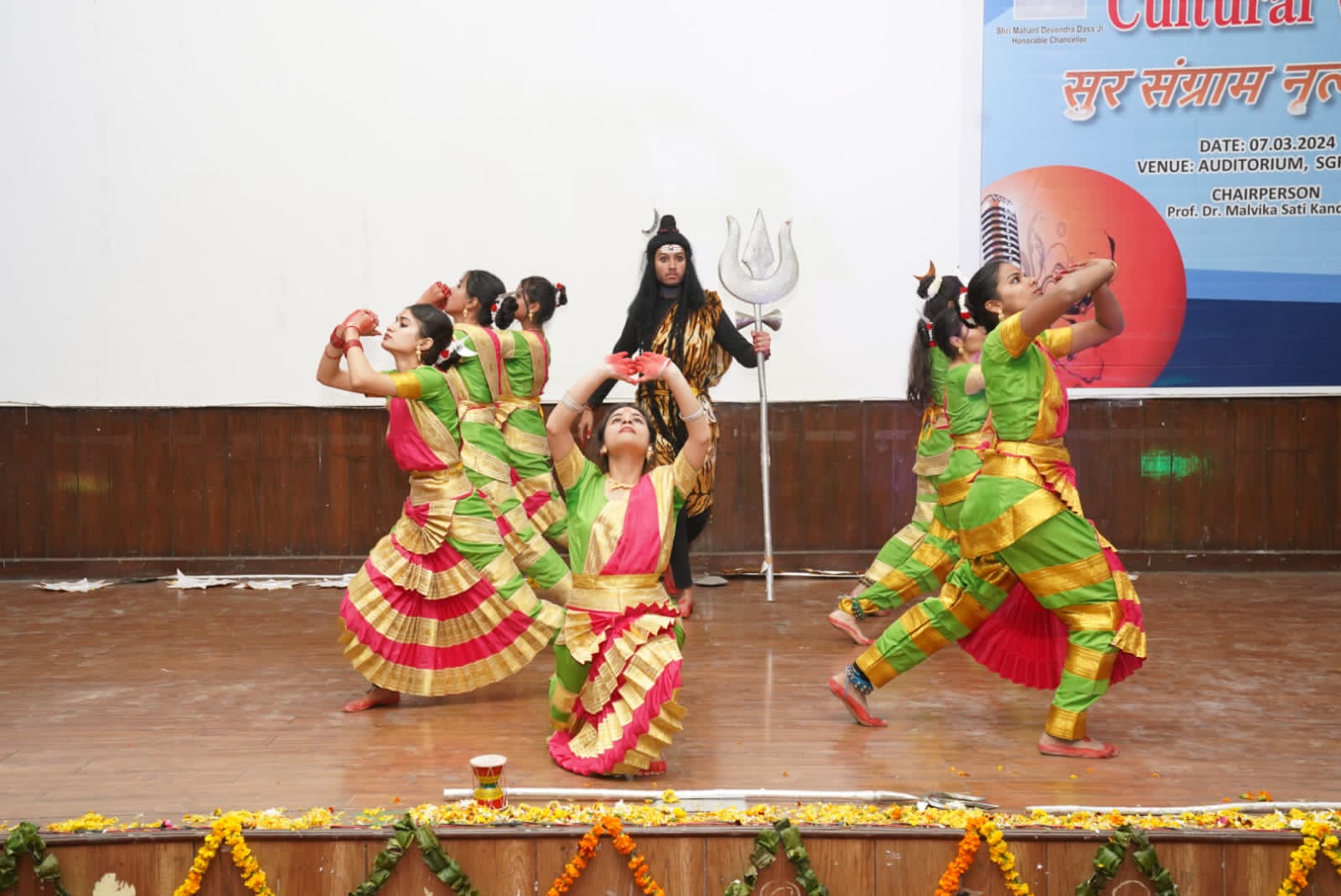 स्कूल ऑफ मेनेजमेंट एण्ड कामर्स स्टडीज़ की हर्षिता कंडारी एण्ड ग्रुप के ग्रुप डांस ने समा बांध दिया। मां भवानी द्वारा रक्तबीज के बध का मंचन देखकर श्रोतागण भावविभोर हो गए। स्कूल ऑफ ह्यूमैनिटीज एण्ड सोशल साइंसेज़ की ईशा शर्मा ने सोलो डांस प्रस्तुति के माध्यम से महिला जीवन की विभिन्न भूमिकाओं एवं जिम्मेदारियों को चरितार्थ किया। मोनू रोहिला ने शिव तांडव सोलो प्रस्तुति से माहोल को शिवमई बना दिया। स्कूल ऑफ कम्प्यूटर एप्लीकेशन एण्ड इंफाॅरमेशन टेक्नेलाॅजी के छात्र जितेन्द्र बालीवुड गीतों की मैलोड़ी पर शानदार प्रस्तुति से युवा धड़कनों को और तेज़ कर दिया। स्कूल ऑफ ह्यमैनिटीज की आकृति एण्ड ग्रुप ने गुजराती फ्यूजन एवं टाॅलीवुड गीतों पर देश के विभिन्न संस्कृतियों को मंच पर प्रस्तुत किया। डाॅ कुमुद सकलानी, मनोज तिवारी, मुख्य कुलानुशासक एवं प्रवक्ता, एसजीआरआरयू, डाॅ पूजा जैन एवं डाॅ दिव्या जुयाल ने निर्णायक मण्डल में अहम भूमिका निभाई।