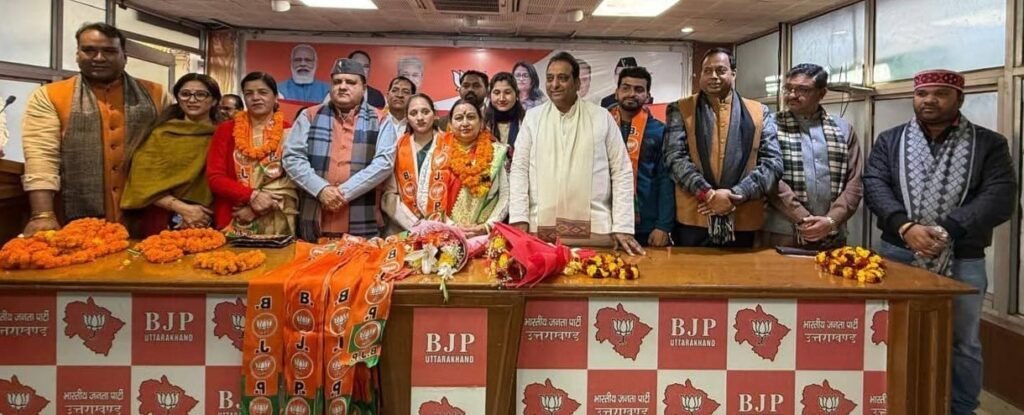देहरादून में पार्षद पूनम पुंडीर और देवकी नौटियाल के साथ डॉ. संजय सिंह, सौरभ चौधरी, सुरेंद्र सिंह, मोहन सिंह, सुरेश शर्मा, डॉ. पूजा राठौड़, डॉ. महेंद्र शर्मा, आर.के. बडोला, राजेश अरोड़ा और राजेंद्र हुड्डा ने कांग्रेस से दूरी बनाते हुए भाजपा की सदस्यता ग्रहण की। ऋषिकेश से पार्षद मुस्कान, पूर्व मंडल अध्यक्ष उषा जोशी, पूर्व पार्षद सुंदरी कंडवाल, अभिनव पाल और शिवानी गोस्वामी भाजपा में शामिल हुए। पौड़ी जनपद में ब्लॉक प्रमुख अस्मिता नेगी के साथ ज्येष्ठ उप प्रमुख अर्चना तोपवाल, कनिष्ठ उप प्रमुख नीरज पटवाल, क्षेत्र पंचायत सदस्य अजीत थपलियाल, सोहन पटवाल, मधु देवी, अनीता देवी, ममता देवी, अभिषेक कुमार और राजेश रावत ने कांग्रेस छोड़ भाजपा पर भरोसा जताया। वहीं रुड़की से सुबोध चौधरी, रविंदर भाटी, अजय मल्होत्रा, देवेंद्र सिंह, महेंद्र और सुमित खटाना सहित कई कार्यकर्ता भाजपा में शामिल हुए।