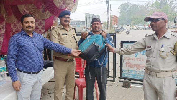 मंगलौर : थाना कोतवाली मंगलौर में तैनात अपर उप निरीक्षक नरेंद्र सिंह, डॉक्टर राहुल कौशिक, होमगार्ड अमरपाल आज 24 मार्च 2024 को SST A 1 नहर पुल मंगलौर चेक पोस्ट पर लोकसभा सामान्य निर्वाचन के दृष्टिगत वाहनों की चेकिंग में मामूर थे चेक पोस्ट से करीब 50 कम की दूरी पर एक मोटरसाइकिल सवार का एक बैग मोटरसाइकिल से गिर गया। जिस पर अपर उप निरीक्षक नरेंद्र सिंह की नजर पड़ी तभी एक कार चालक उसके पास रुका और उक्त बैग को उठाकर ले जाने लगा जिसको ले जाने से रोकते हुए बैग अपनी सुपुर्दगी में लिया गया। बैग में डायरी, कागजात एवं कपड़े तथा ₹22000 नगद पाए गए। उक्त व्यक्ति की तलाश की गई तो बैग एवं धनराशि प्रमोद कुमार पुत्र हरि सिंह निवासी ग्राम बसेड़ा थाना छप्पर जनपद मुजफ्फरनगर की होना पाई गई। जिनको सूचना देकर चेक पोस्ट पर आने के पश्चात उसका बैग एवं नगद ₹22000 उनकी सुपर्दगी में दिए गए। अपना बैग एवं ₹22000 प्राप्त कर प्रमोद कुमार अति प्रश्न हुए एवं उत्तराखंड पुलिस की भूरि भूरि प्रशंसा करते हुए हृदय से धन्यवाद दिया गया।