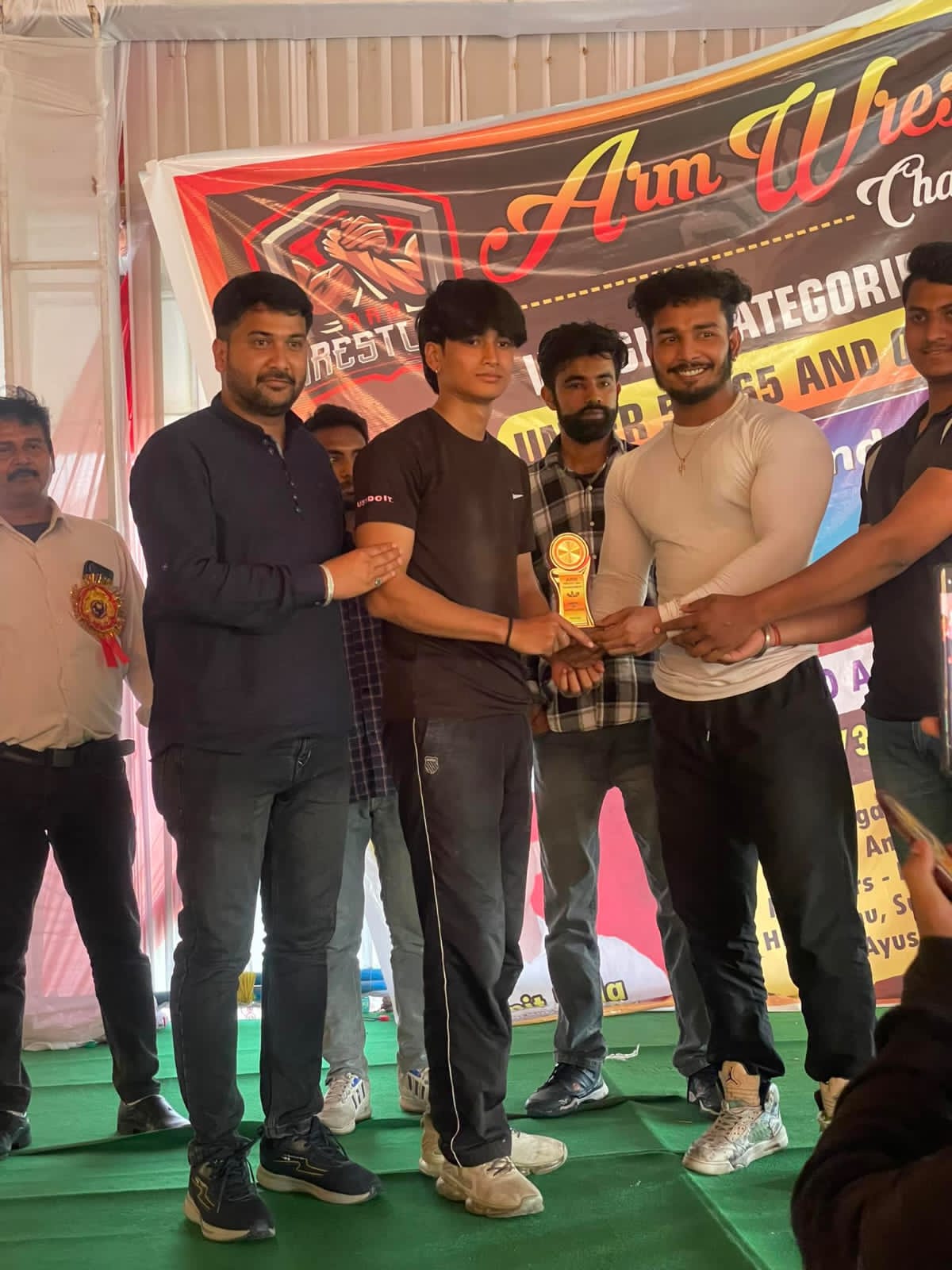कोटद्वार : भाबर कोटद्वार के आशीर्वाद वेडिंग पॉइंट के आर्म रेसलिंग championship प्रतियोगिता का आयोजित किया गया, कार्यक्रम का विधिवत शुभारंभ मुख्य अतिथि गौरव जोशी, विशिष्ट अतिथि सिमरन बिष्ट व सर्वेंद्र काला ने दीप प्रज्वलित कर किया गया. कार्यक्रम सयोंजक अमित काला को खेल की मुहिम से जोडने के लिए युवाओं के लिए इस पंजा खेल प्रतियोगिता का आयोजन भाबर क्षेत्र में किया गया. जिसमे प्रतिभागियों के 100 रजिस्ट्रेशन आए. ओपन प्रतियोगिता 2024 में 65 वर्ग में विजेता राज आर्य एवं गुरमीत रहे, 55 वर्ग COC प्रतियोगिता सम्पन्न हुई जिसमे 65 वर्ग क्रिगा में CoC लेफट हैड में हिमाशु विजेता रहे. 55 वर्ग (वजन) में प्रियांशु शाह विजेता एवं उपविजेता अनुज रहे. कार्यक्रम संयोजक अमित काला, सिमरन कुकरेती, सर्वेंद्र काला, अजय कुमार, गौरव पाडे, सरोज काला, सुभम कडवाल, आयुष त्रिपाठी, प्रियंक, सिद्धार्थ कुलाश्री, Power zone gym सदस्य, फिटनेस AB क्लब आदि उपस्थित रहे.