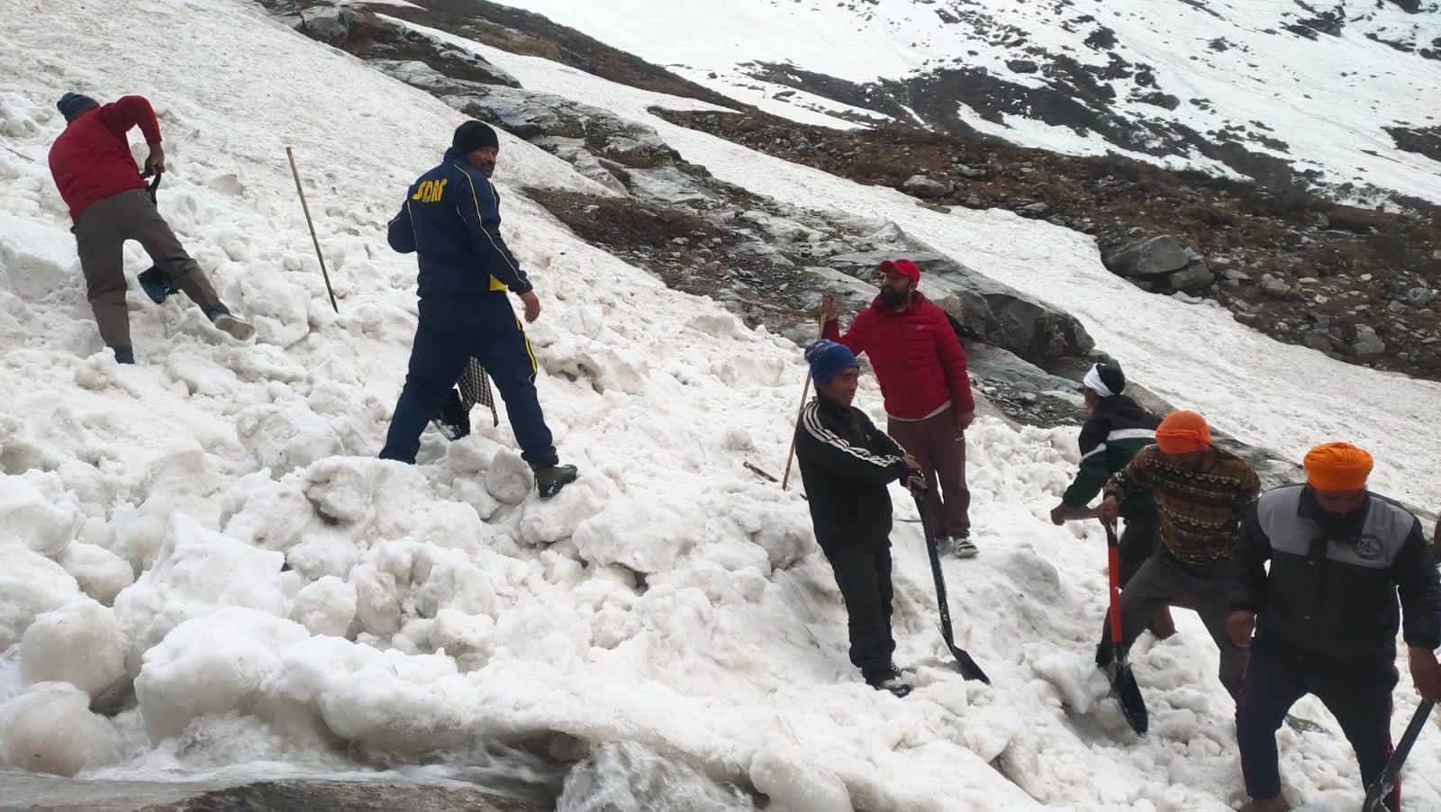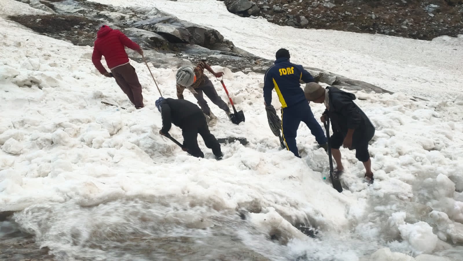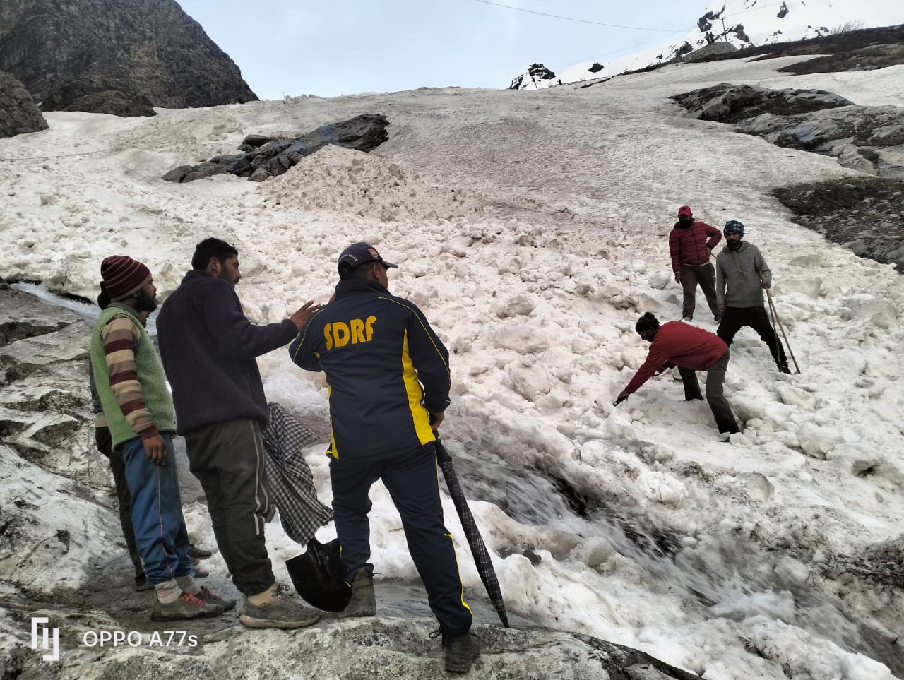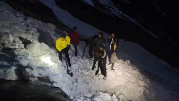 हेमकुंड साहिब : श्री हेमकुण्ड साहिब यात्रा मार्ग पर हुआ एवलांच, SDRF ने किया रेस्क्यू । आज 04 जून 2023 को गुरुद्वारा प्रबंधक श्री हेमकुंड साहिब द्वारा SDRF को सूचित किया गया कि हेमकुण्ड साहिब से 01 किमी पूर्व अटलाकोटि में हिमस्खलन होने से कुछ श्रद्धालु वहाँ फंस गए है। उक्त सूचना पर यात्रा मार्ग पर पूर्व से तैनात SDRF टीम द्वारा त्वरित रेस्क्यू करते हुए तत्काल मौके पर पहुँचकर गहन सर्चिंग करते हुए कड़ी मशक्कत के बाद 05 व्यक्तियों (03 महिलाएं व 02 पुरुष) को रेस्क्यू कर सकुशल निकालकर सुरक्षित स्थान पर पहुँचाया गया इसके अतिरिक्त 01 अन्य की सर्चिंग हेतु सर्च ऑपरेशन चलाया जा रहा है।