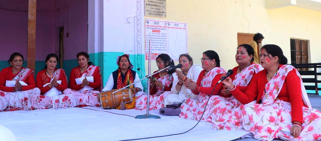 सोमवार को नुमाईश मैदान में मतदाताओं को जागरूक करने के उद्देश्य से स्वीप टीम द्वारा महिला होली प्रतियोगिता का आयोजन किया गया। महिला टीमों द्वारा एक से बढ़कर एक होली गीत गाकर लोगों को लोकसभा चुनाव में वोट डालने के लिए प्रेरित किया गया। महिला होल्यारों ने आगामी 19 अप्रैल को सभी लोगों से अपने घरों से निकल कर शत प्रतिशत मतदान करने की अपील की। होली के माध्यम से लोगों को मतदान की उपयोगिता समझाते हुए अधिक से अधिक संख्या में मतदान करने के लिए जागरूक किया गया। इसके अलावा बिना किसी भय और प्रलोभन के अपने मताधिकार का प्रयोग करने के लिए प्रेरित किया गया। इस अवसर पर दीपक पाठक, चेयरमैन रेडक्रास संजय शाह जगाती, आलोक पांडे, डॉ राजीव जोशी, हरीश दफौटी, उमेश जोशी, उमेश शाह, हिमांशु चौबे, कन्हैया वर्मा आदि उपस्थित रहे।