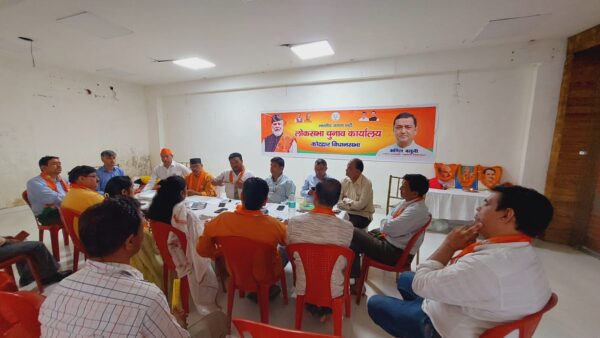 कोटद्वार । भारतीय जनता पार्टी नगर मण्डल के पदाधिकरियो, शक्तिकेन्द्र संयोजको की एक बैठक शुक्रवार को चुनाव कार्यालय देवी रोड़ में आहुत की गई। बैठक को सम्बोधित करते हुए विधानसभा संयोजक राजगौरव नौटियाल ने शक्तिकेन्द्र संयोजकों के विषय में विस्तृत चर्चा की और 31 मार्च से 4 अप्रैल तक होने वाली शक्तिकेन्द्र सम्मेलनों के बारे में कार्यकर्ताओं को जानकारी दी। बैठक में नगर अध्यक्ष पंकज भाटिया ने कहा कि 31 मार्च से 4 अप्रैल तक होने वाले शक्तिकेन्द्र सम्मेलनों में शक्तिकेन्द्र के सभी बूथ अध्यक्ष, पन्ना प्रमुख सहित शक्तिकेन्द्र में निवास करने वाले निवासी प्रभावी मतदाता युवा, मातृशक्ति सहित सभी उपस्थित रहेंगे । बैठक में विधानसभा संयोजक राजगौरव नौटियाल, नगर अध्यक्ष पंकज भाटिया, मानेश्वरी बिष्ट, संजय रावत, सूर्यकांत बलूनी, विनय शर्मा, आशीष सतीजा, ओम प्रकाश बलूनी, विनोद तिवारी, मो० कासिफ, रेनु शर्मा, गजेन्द्र रावत, दीपक पाण्डे, संजय पंथवाल, सुरेन्द्र बिजलवाण, सुमित वर्मा आदि उपस्थित रहे।