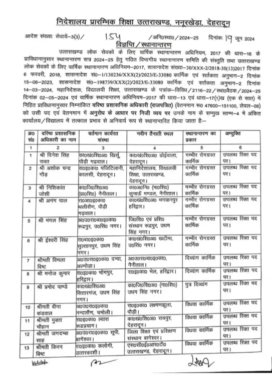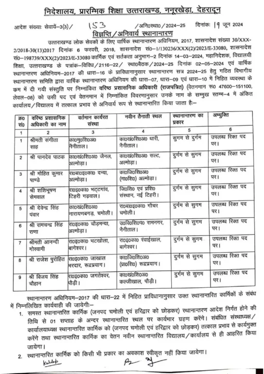 देहरादून : शिक्षा विभाग में बड़े स्तर पर तबादले हुए हैं। इनमें सुगम में डटे शिक्षकों को दुर्गम में भेजा गया है। अंतर मंडलीय स्थानांतरण भी किए गए हैं।