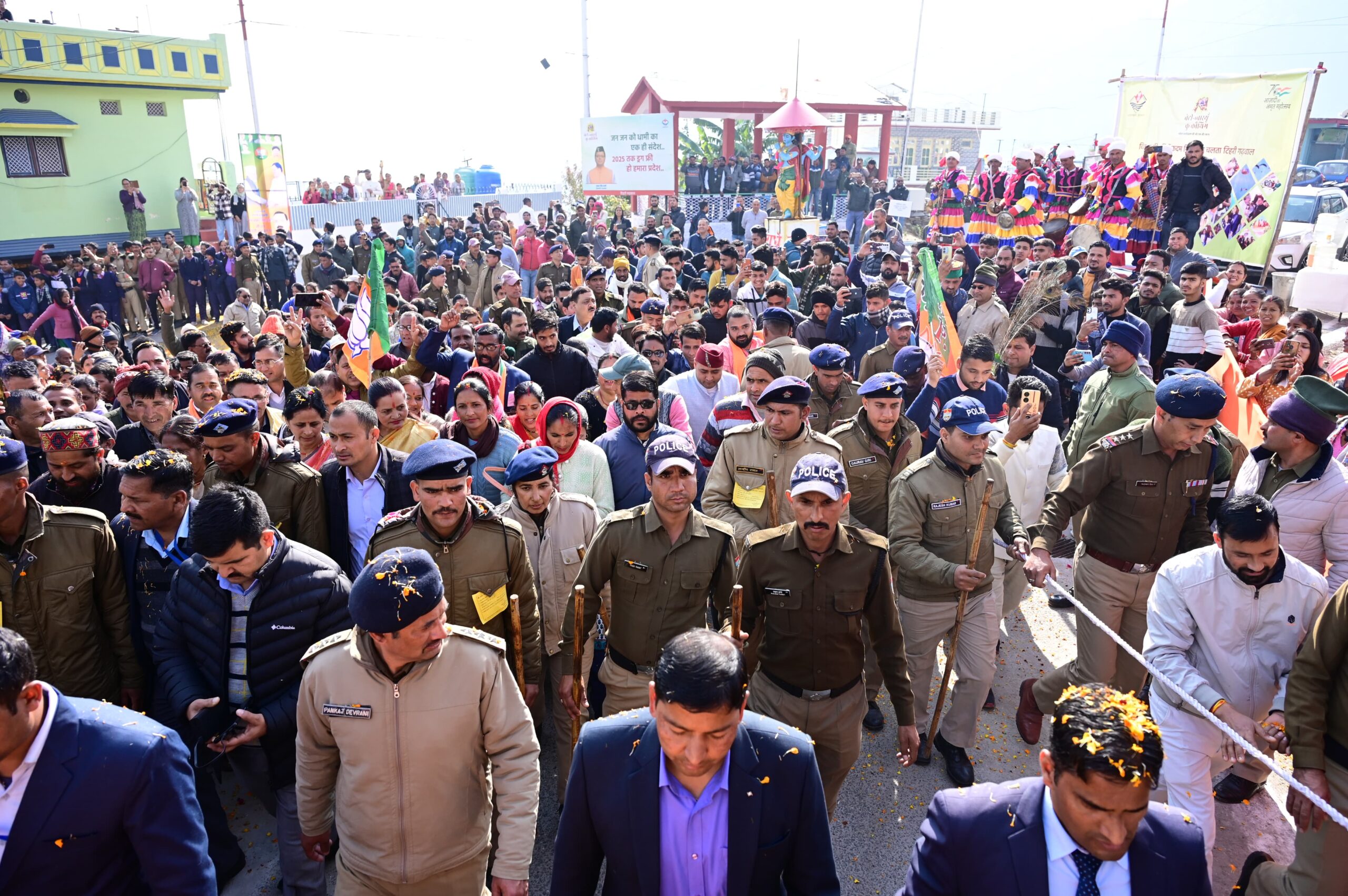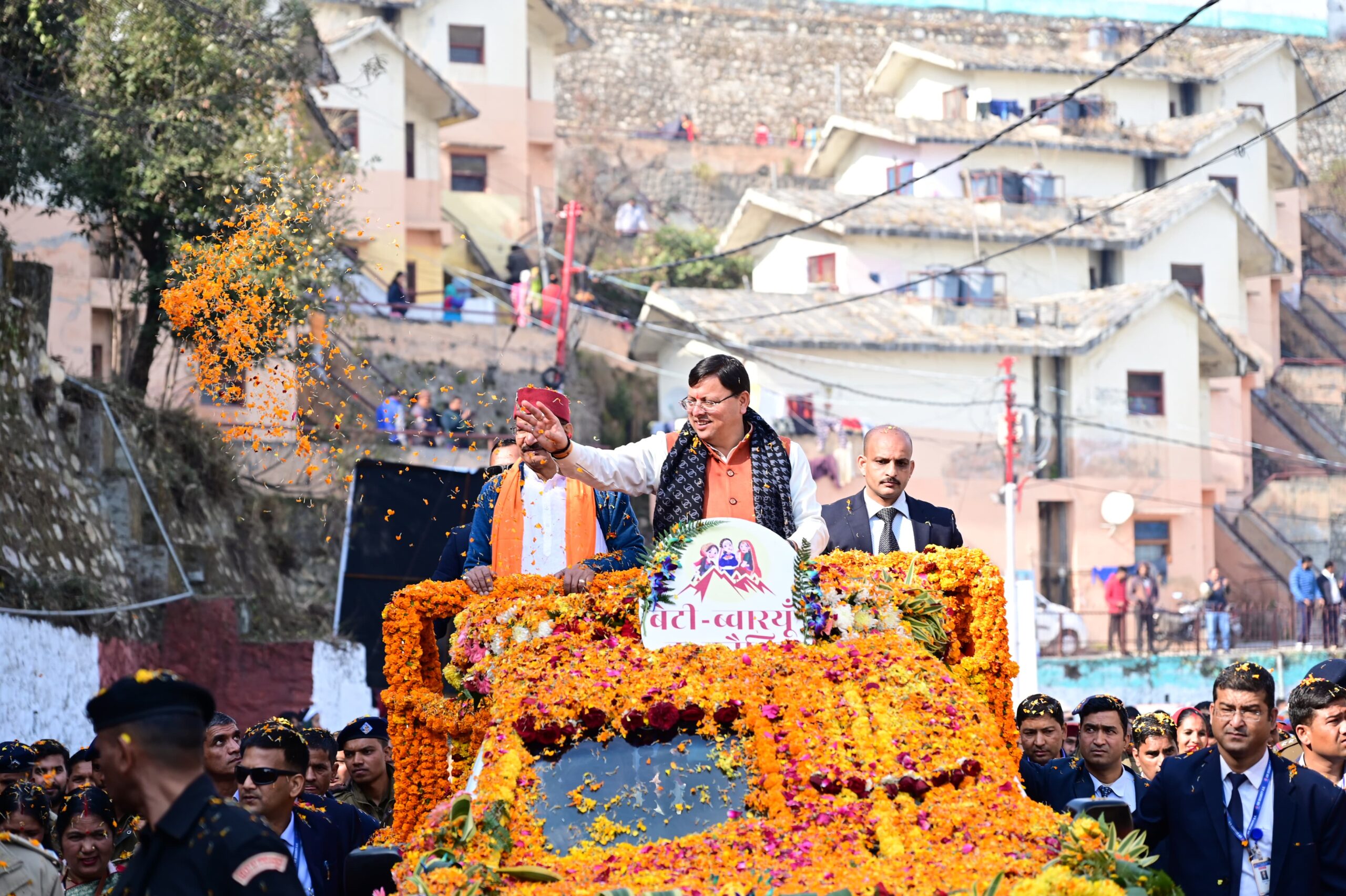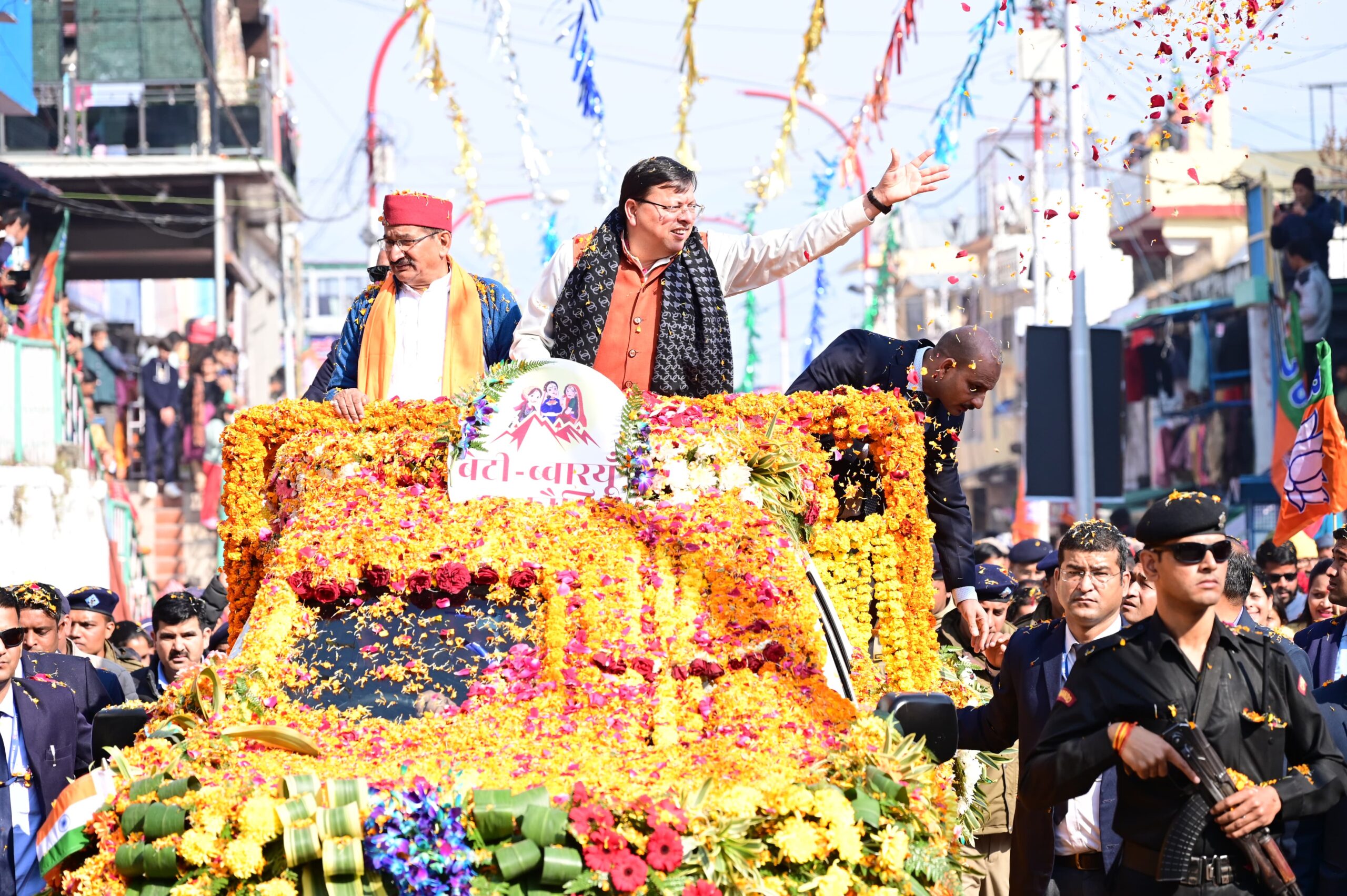तत्पश्चात् मुख्यमंत्री पुष्कर सिंह धामी गणेश चौक से प्रतापनगर इण्टर कॉलेज मैदान तक लगभग 02 किमी लंबे विशाल रोड शो में शामिल हुए। रोड शो के दौरान हज़ारों की संख्या में स्थानीय जनता ने स्थानीय पारंपरिक वाद्य यंत्रों एवं सांस्कृतिक कार्यक्रम के माध्यम से मुख्यमंत्री का जोरदार स्वागत किया। मुख्यमंत्री धामी ने हज़ारों की संख्या में नई टिहरी पहुँचे स्थानीय जनता, महिला स्वयं सहायता समूहों, युवाओं और स्कूली छात्र-छात्राओं इस भव्य अभिवादन के लिए आभार प्रकट किया।