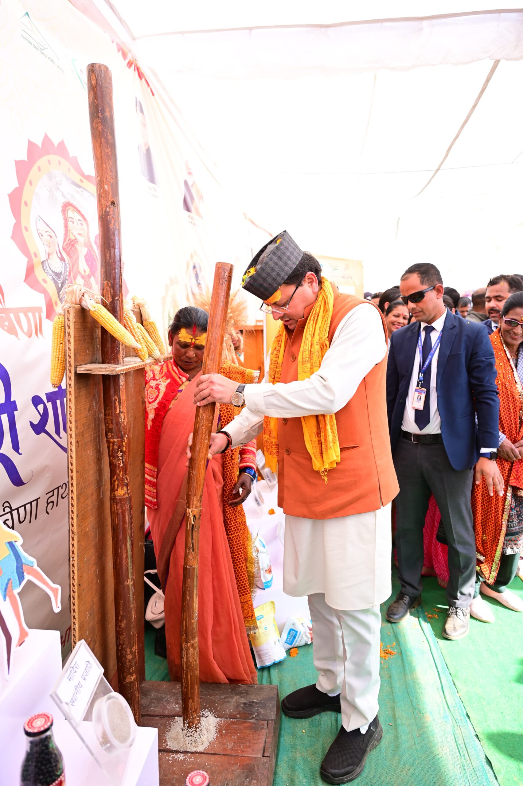 मुख्यमंत्री ने विभिन्न विभागों एवं स्वयं सहायता समूहों द्वारा लगाए गए स्टालों का अवलोकन के साथ भगवान श्री राम दरबार एवं कन्या पूजन भी किया। मुख्यमंत्री ने धारचूला की दारमा, व्यास घाटियों के वाइब्रेंट विलेज से आई महिलाओं के साथ बागेस्वरी चरखे एवं तकली से ऊन कताई की। साथ ही उन्होंने रांच में पारंपरिक विधि से कालिन भी बनाया। मुख्यमंत्री ने फिरका और बिंडा (मटका) के माध्यम से मट्ठा भी बनाया। साथ ही सिलबट्टे में हरा नून ( नमक) पीसा।
