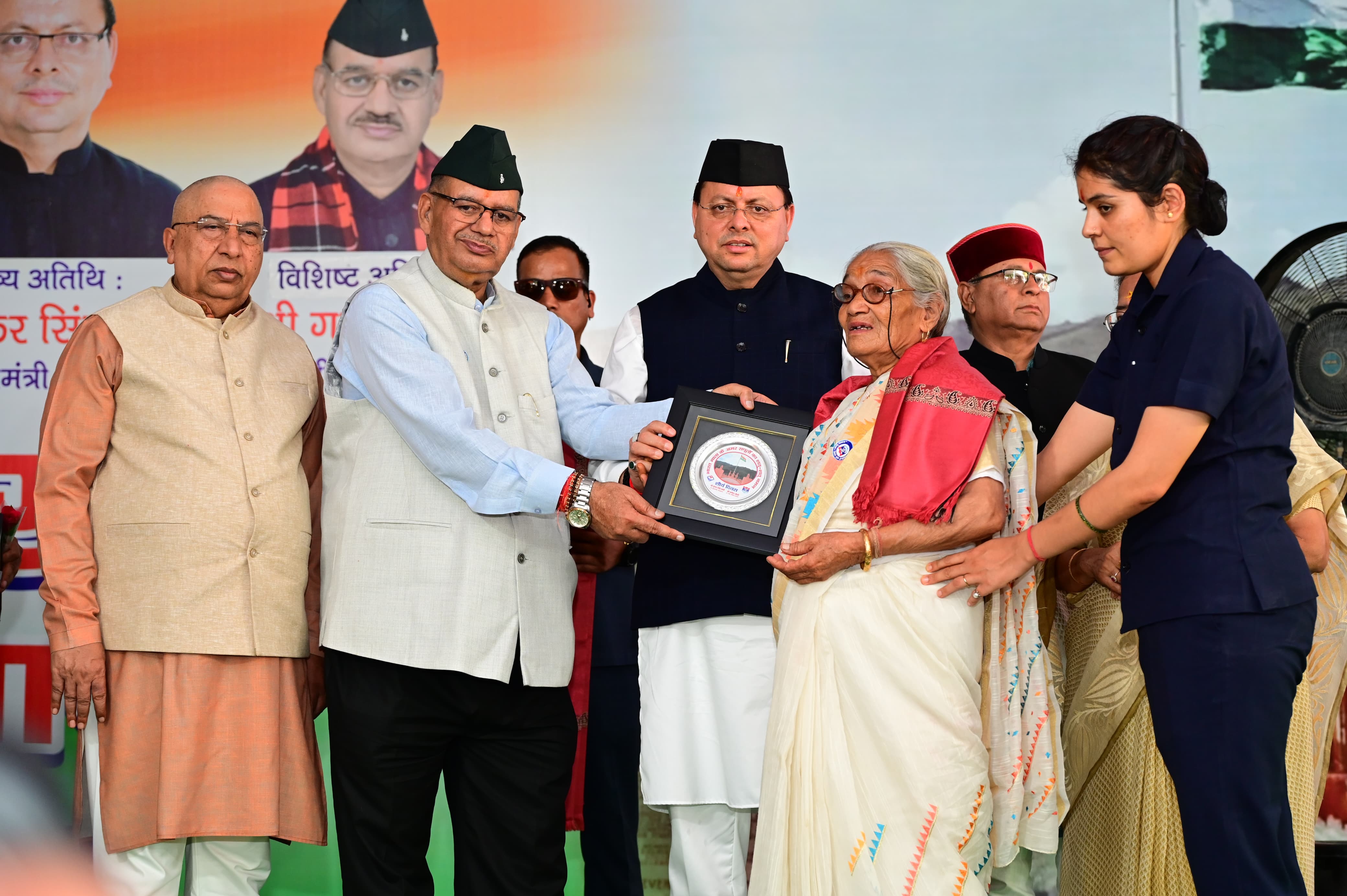 देहरादून : मुख्यमंत्री पुष्कर सिंह धामी ने शनिवार को गांधी पार्क, देहरादून में कारगिल विजय दिवस (शौर्य दिवस) के अवसर पर शहीद स्मारक पर पुष्प चक्र अर्पित कर कारगिल शहीदों को श्रद्धांजलि दी। मुख्यमंत्री ने इस अवसर पर कारगिल शहीदों के परिवारजनों को भी सम्मानित किया।