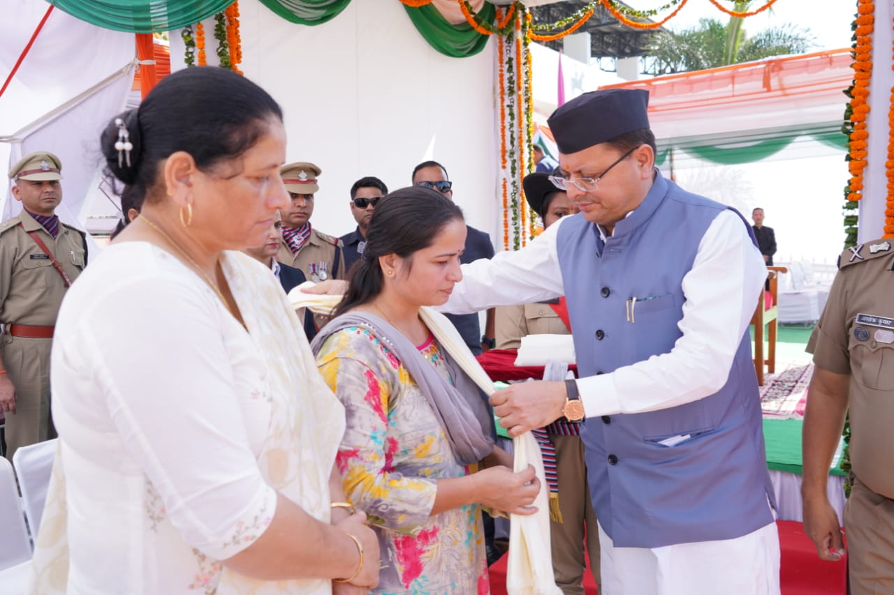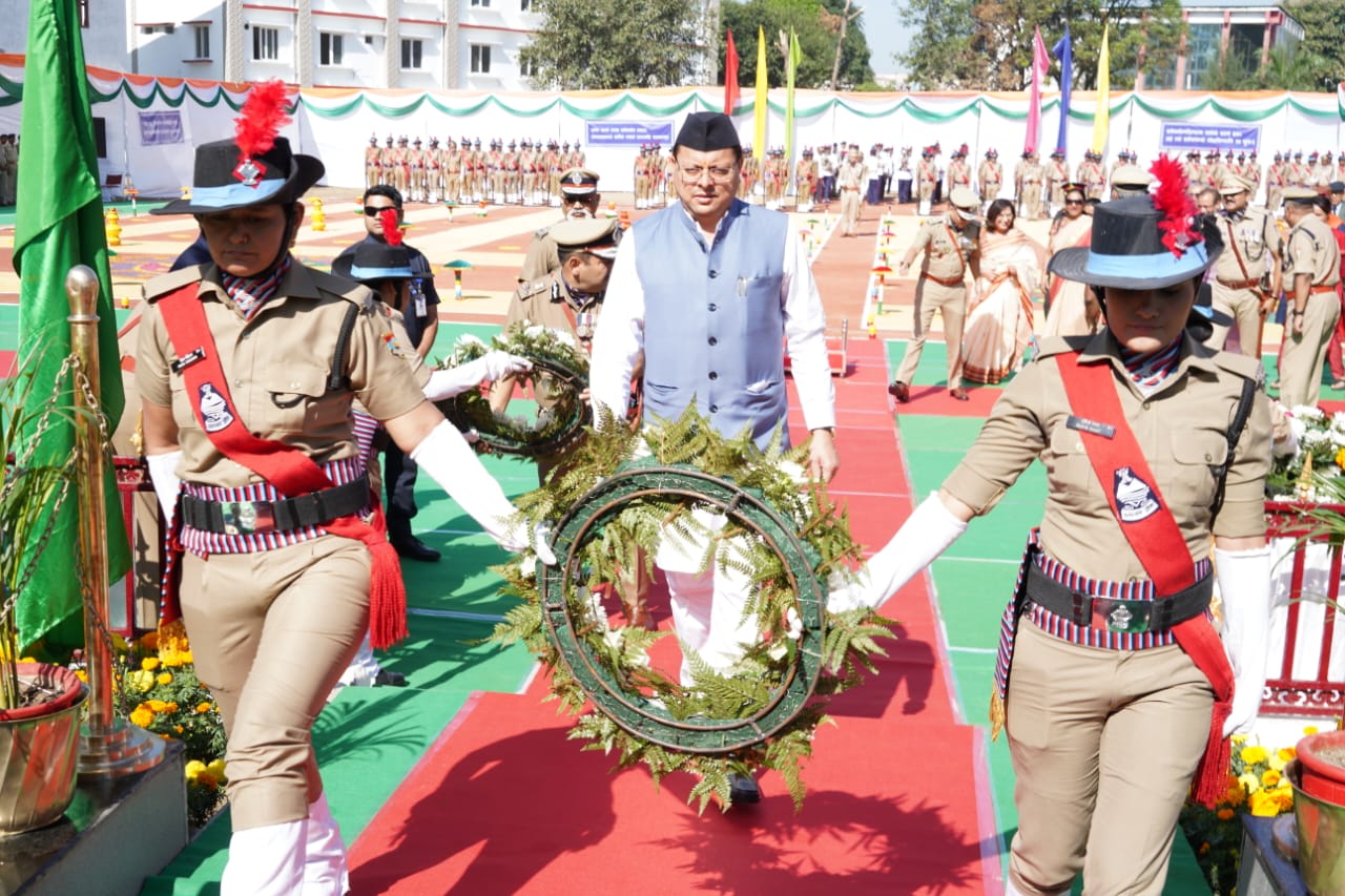 देहरादून : मुख्यमंत्री पुष्कर सिंह धामी ने पुलिस लाईन, देहरादून में पुलिस स्मृति दिवस के अवसर पर शहीद स्मारक पर पुलिस एवं अर्द्ध सैन्य बलों के शहीदों को पुष्प चक्र अर्पित कर श्रद्धांजलि अर्पित की तथा उत्तराखण्ड के शहीद पुलिस जवानों के परिजनों को सम्मानित भी किया। मुख्यमंत्री ने इस अवसर पर चार घोषणाएं की। उन्होंने कहा कि सेवा के दौरान पुलिस कर्मियों की अकाल मृत्यु होने पर आश्रित परिवार को तत्काल 01 लाख रूपये आर्थिक सहयोग दिये जाने के लिए पुलिस शहीद कल्याण कोष के लिए 02 करोड़ रूपये की धनराशि दी जायेगी। अराजपत्रित पुलिस कर्मचारियों का निःशुल्क वार्षिक स्वास्थ्य परीक्षण कराया जायेगा। अगले तीन वर्षों में पुलिस कर्मियों के आवास हेतु 100 करोड़ रूपये की धनराशि का प्राविधान किया जायेगा। पुलिस विभाग में मृतक आश्रितों की भर्ती संबंधी अड़चनों को दूर किया जायेगा।