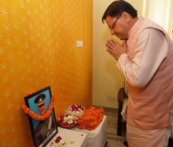 Home » Blog » मुख्यमंत्री पुष्कर सिंह धामी ने शहीद मेजर प्रणय नेगी के चित्र पर पुष्पांजलि अर्पित कर दी श्रद्धांजलि