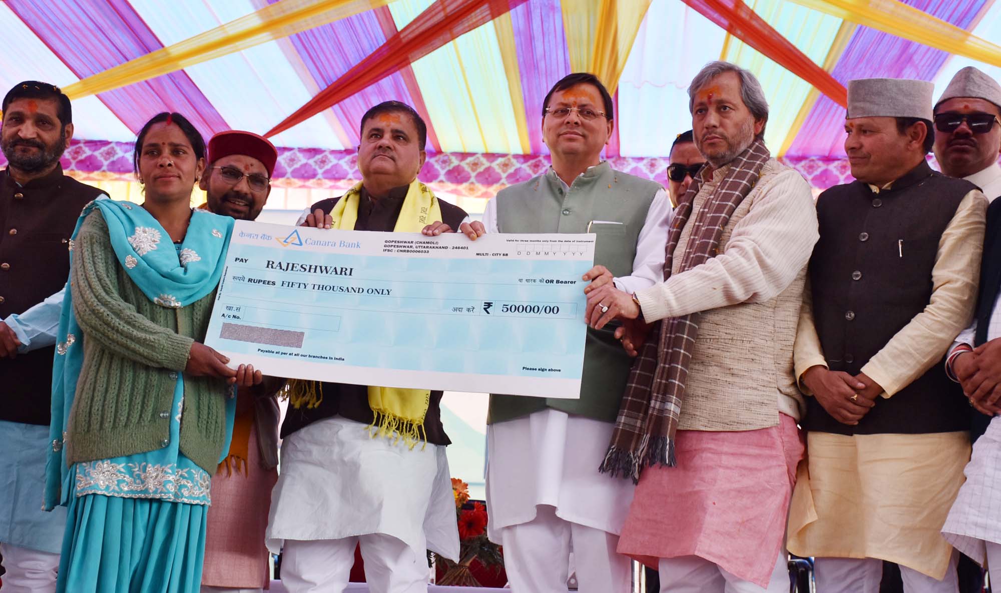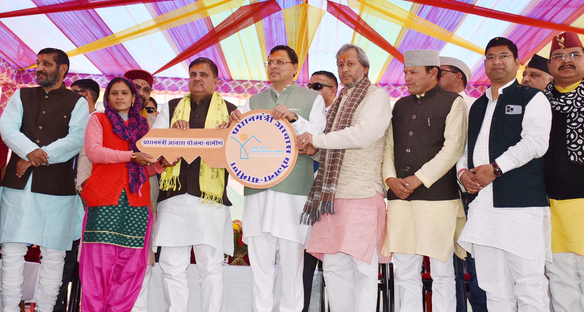 इस दौरान मुख्यमंत्री ने अटल आवास योजना के अंतर्गत निर्मित भवनों के 02 लाभार्थियों को प्रतीकात्मक तौर पर घर की चाबी सौंपी। जिसमें मथुरा लाल और मुकेश लाल शामिल है। प्रधानमंत्री आवास योजना (शहरी) के अंतर्गत नीलम देवी को द्वितीय किश्त के तहत 60 हजार का चेक प्रदान किया। प्रधानमंत्री आवास योजना (ग्रामीण) के अंतर्गत संगीता देवी और गुड्डी देवी को घर की चाबी प्रदान की। मुख्यमंत्री स्वरोजगार योजना के अंतर्गत राजेश्वरी देवी और नरेन्द्र सिंह को 50-50 हजार रुपये का अंशदान धनराशि के चेक प्रदान किए। महिला सशक्तिकरण के तहत मन्दोदरी देवी को महालक्ष्मी किट प्रदान किया। उल्लेखनीय कार्य के लिए युवक मंगल दल बूरा को 75 हजार और महिला मंगल दल आला जोखना 37 हजार 500 की प्रोत्साहन राशि के चेक प्रदान किए। देवभूमि मत्स्य जीवी सहकारिता समिति को 20 लाख का चेक प्रदान किया।