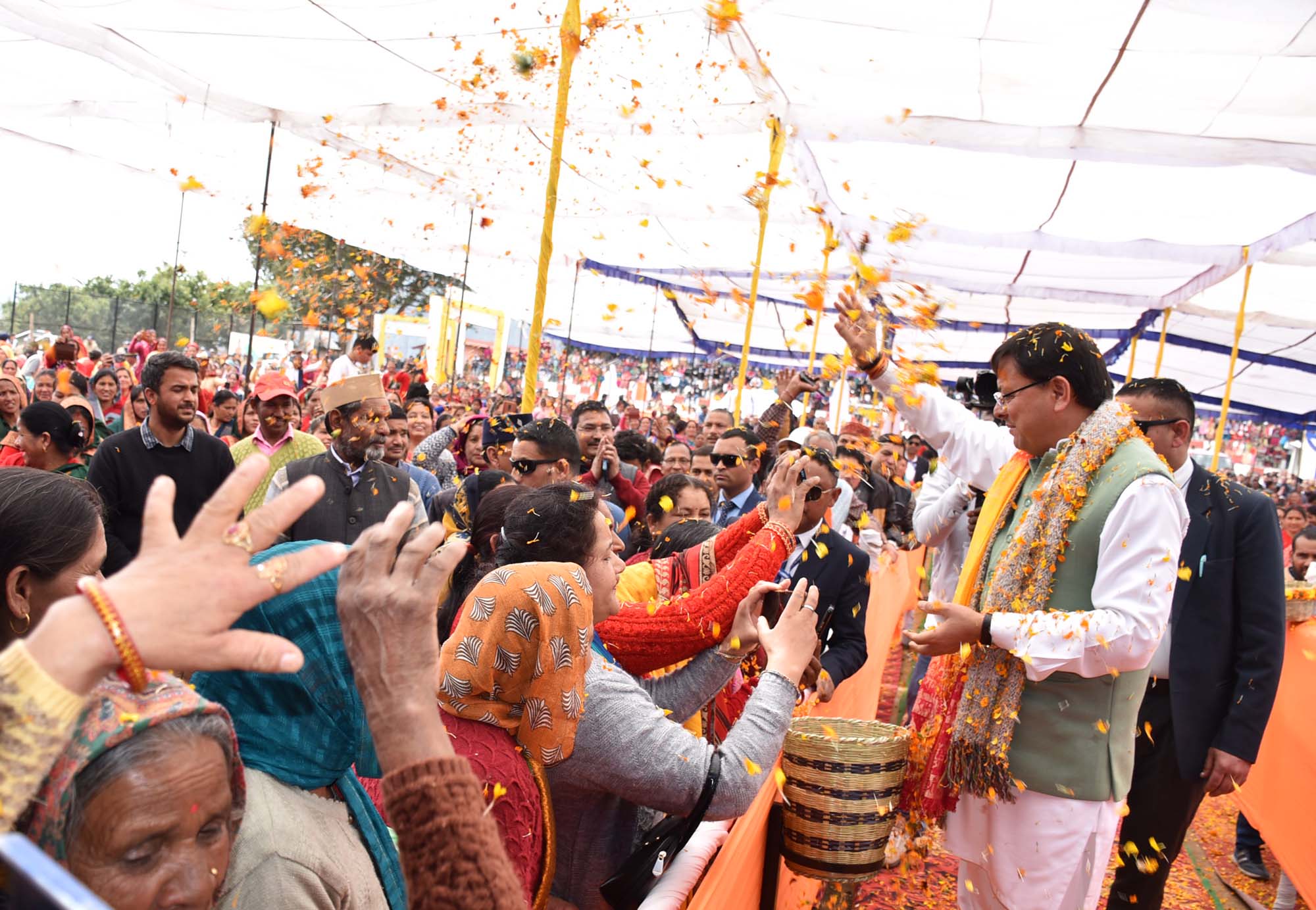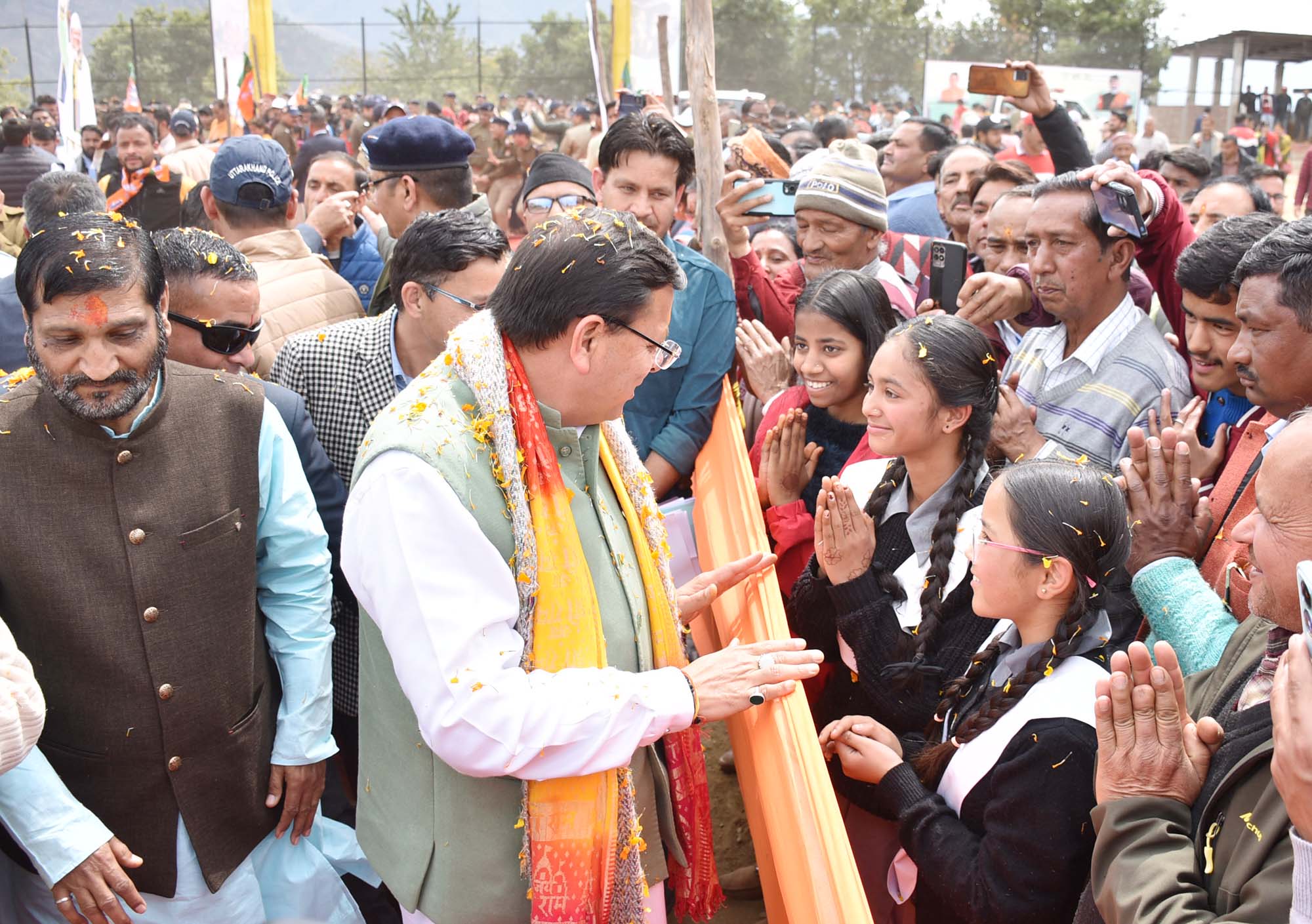 गोपेश्वर : मुख्यमंत्री पुष्कर सिंह धामी ने बुधवार को जनपद चमोली के पुलिस मैदान गोपेश्वर में आयोजित ‘‘लाभार्थी सम्मान समारोह’’ में प्रतिभाग करते हुए ₹ 229.3 करोड़ की विभिन्न विकास योजनाओं का लोकापर्ण एवं शिलान्यास किया। जिसमें 44.13 करोड़ की योजनाओं का लोकापर्ण एवं 185.17 करोड़ की योजनाओं का शिलान्यास शामिल है। इस दौरान मुख्यमंत्री ने जनपद के विकास के लिए कई घोषणाएं भी की जिसमें हापला-धोतीधार मोटर मार्ग निर्माण कार्य को शीघ्र पूरा किए जाने, दशोली ब्लाक में गोपेश्वर मंदिर मार्ग से बैतरणी – सिरखोमा- सेंटुणा – बैरागणा मोटर मार्ग के किलोमीटर एक से लेकर सेटुणा तक मोटर मार्ग का निर्माण हेतु शासकीय एवं वित्तीय स्वीकृति प्रदान की जाने, कर्णप्रयाग में लामबगड के अंतर्गत गंगानगर माई मंदिर से भैरव तोक तक रामगंगा नदी पर झूला पुल का निर्माण किए जाने, थराली विधानसभा में चार विकास खंडों में गौ-संरक्षण सेवा की स्थापना किए जाने एवं थराली कुलसारी में सेंटर ऑफ एक्सीलेंस की जनहित में स्वीकृति दी जाने की घोषणा शामिल है।