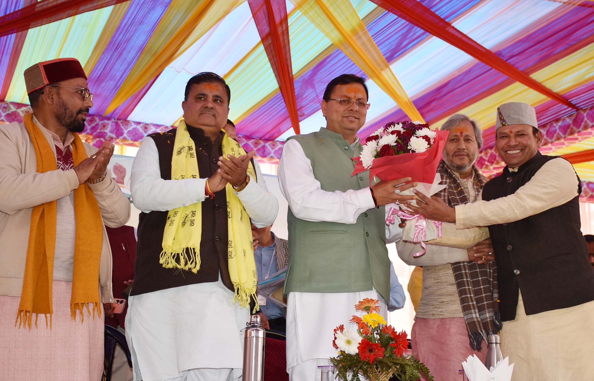 गढ़वाल सांसद तीरथ सिंह रावत ने कहा कि देश प्रधानमंत्री वसुधैव कुटुम्बकम् की परिकल्पना के साथ रात-दिन समाज के हर वर्ग के लिए काम करने में जुटे है। थराली विधायक भूपाल राम टम्टा और कर्णप्रयाग विधायक अनिल नौटियाल ने मुख्यमंत्री का जनपद आगमन पर स्वागत करते हुए जनपद के विकास के लिए सरकार द्वारा किए जा रहे कार्यों एवं उपलब्धियों के लिए मुख्यमंत्री का आभार व्यक्त किया। इस अवसर पर राज्यसभा सांसद महेन्द्र भट्ट, गढ़वाल सांसद तीरथ सिंह रावत, राज्यमंत्री रेमश गडिया, थराली विधायक भूपाल राम टम्टा, कर्णप्रयाग विधायक अनिल नौटियाल, भाजपा जिला अध्यक्ष रमेश मैखुरी, जिलाधिकारी हिमांशु खुराना, पुलिस अधीक्षक रेखा यादव, मुख्य विकास अधिकारी अभिनव शाह, अपर जिलाधिकारी डॉ अभिषेक त्रिपाठी, एसडीएम आरके पांडेय आदि सहित बडी संख्या में स्थानीय जनता एवं विभिन्न योजनाओं से आच्छादित लाभार्थी मौजूद रहे।