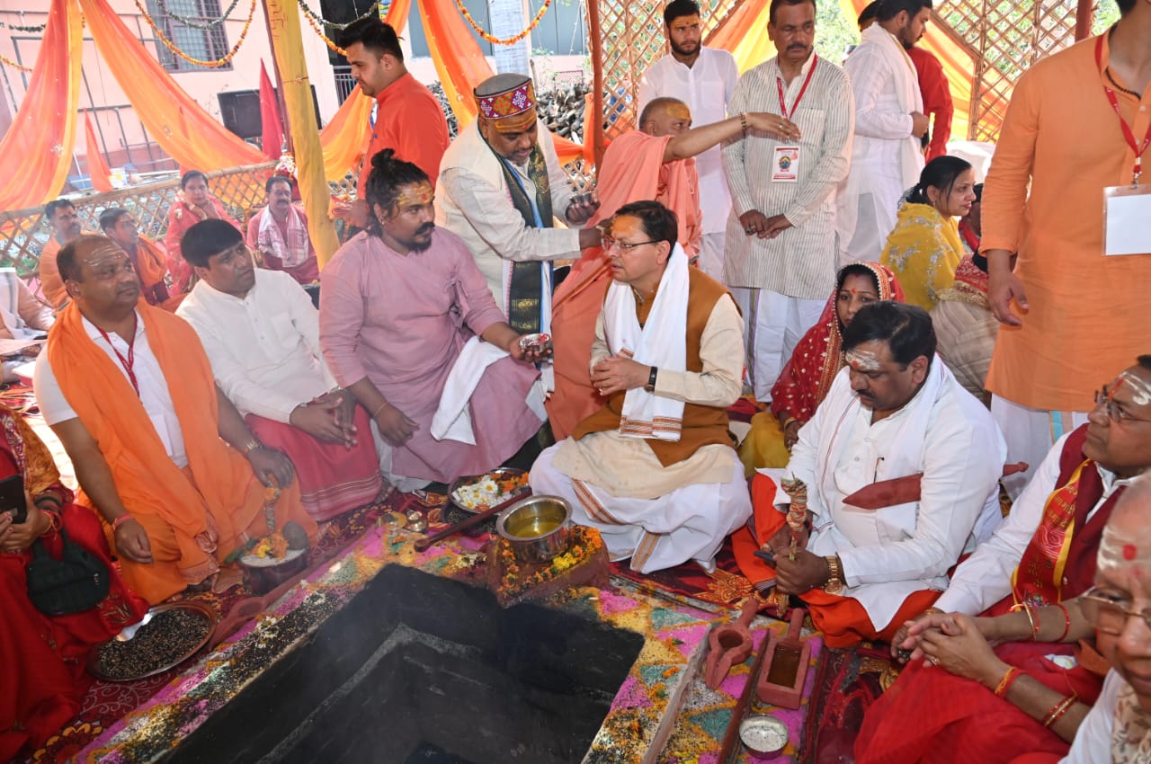 हरिद्वार : मुख्यमंत्री पुष्कर सिंह धामी ने गुरूवार को जीवनदीप आश्रम में चल रहे पंच कुण्डीय होमात्मक श्री महारूद्र यज्ञ अनुष्ठान में शामिल होकर यज्ञ में आहूति दी। मुख्यमंत्री ने भगवान रूद्र से राज्य, देश एवं विश्व कल्याण की कामना। इस अवसर पर स्वामी यतीन्द्रानन्द गिरी ने मुख्यमंत्री को स्मृति चिन्ह भेंट किया व प्रतिभागी यजमान समूह ने स्मृति स्वरूप त्रिशूल भेंट किया। मुख्यमंत्री ने यज्ञ अनुष्ठान में प्रतिभाग करने वाले यजमान व यज्ञ को सम्पादित कराने वाले आचार्यों एवं सहयोगी व्यक्तियों को अंगवस्त्र ओढ़ाकर सम्मानित किया।