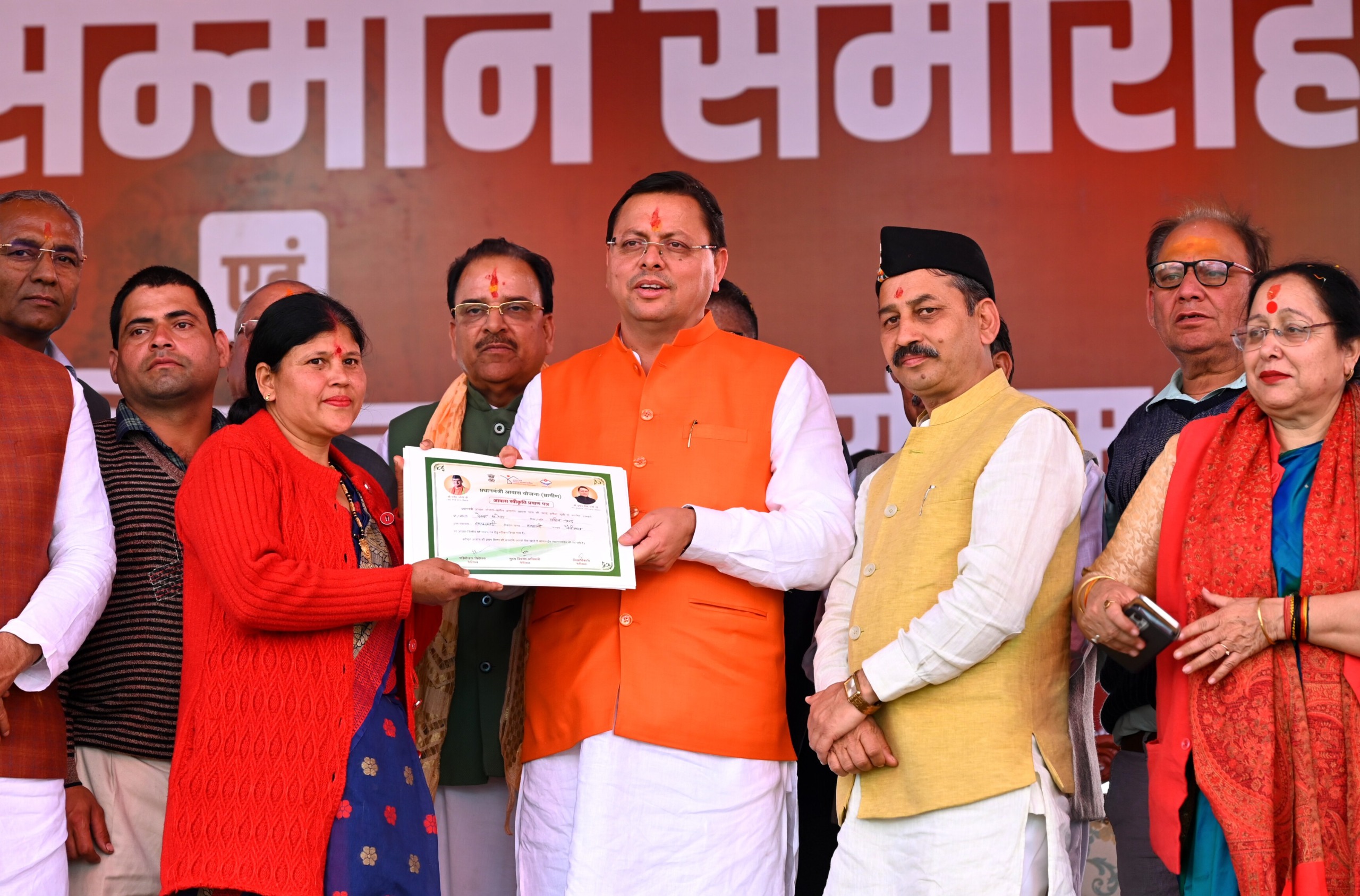 मुख्यमंत्री ने कहा कि देवभूमि जैसे पवित्र भूमि पर लंबे समय से सरकारी भूमि पर अतिक्रमण का खतरनाक षड़यंत्र रचा जा रहा है। सिंचाई विभाग, वन विभाग, नगर निगम सहित अन्य विभागों की सरकारी भूमि पर कब्जे की नीयत से कथित धार्मिक स्थल बनाकर उन्हें कब्जाया जा रहा था। सरकार द्वारा अतिक्रमण मुक्त अभियान चलाकर लगभग 3500 एकड अधिक भूमि से अतिक्रमण मुक्त कराया है। उन्होंने कहा कि देवभूमि में अतिक्रमण अभियान भविष्य में भी चलता रहेगा। सरकार जनता का दुख दर्द समझती है सरकार द्वारा व्यापारियों हेतु वैडिंग जोन बनाये जा रहे हैं की भी बात मुख्यमंत्री ने कही। उन्होंने कहा कि राज्य हित में नकल विरोधी कानून, समान नागरिक संहिता और धर्मांतरण को लेकर कानून बनाये गये हैं, इससे युवाओं, महिलाओं के हित सुरक्षित होने के साथ देवभूमि के स्वरूप को बनाये रखने में मदद मिलेगी।