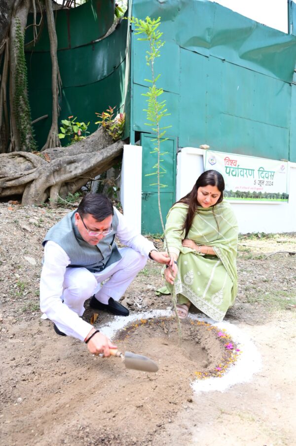 देहरादून : मुख्यमंत्री पुष्कर सिंह धामी ने विश्व पर्यावरण दिवस के अवसर पर मुख्यमंत्री आवास परिसर में वृक्षारोपण किया। उन्होंने विश्व पर्यावरण दिवस की प्रदेशवासियों को शुभकामना दी। इस अवसर पर गीता पुष्कर धामी, विधायक किशोर उपाध्याय, फकीर राम टम्टा और पूर्व वन मंत्री दिनेश अग्रवाल ने भी वृक्षारोपण किया।