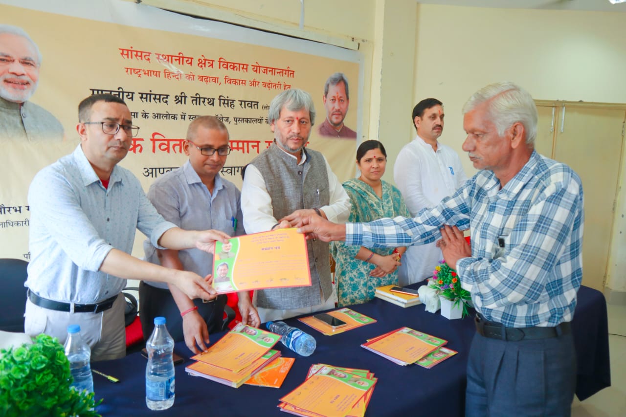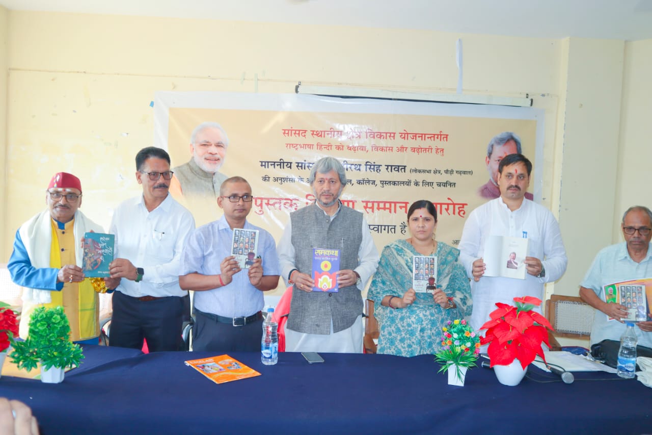 रुद्रप्रयाग : गढ़वाल सांसद तीरथ सिंह रावत हिंदी भाषा के उत्थान एवं प्रचार-प्रसार के लिए लगातार कार्य कर रहे हैं। रावत हिंदी भाषा एवं साहित्य के प्रचार-प्रसार के लिए विशेष पुस्तक वितरण एवं सम्मान समारोह अभियान चला रहे हैं। अभियान के तहत शुक्रवार को रूद्रप्रयाग के 108 स्कूलों को हिंदी एवं साहित्य की पुस्तकें भेंट की गई। वहीं जनपद के पांच साहित्यकारों को सम्मानित भी किया गया।