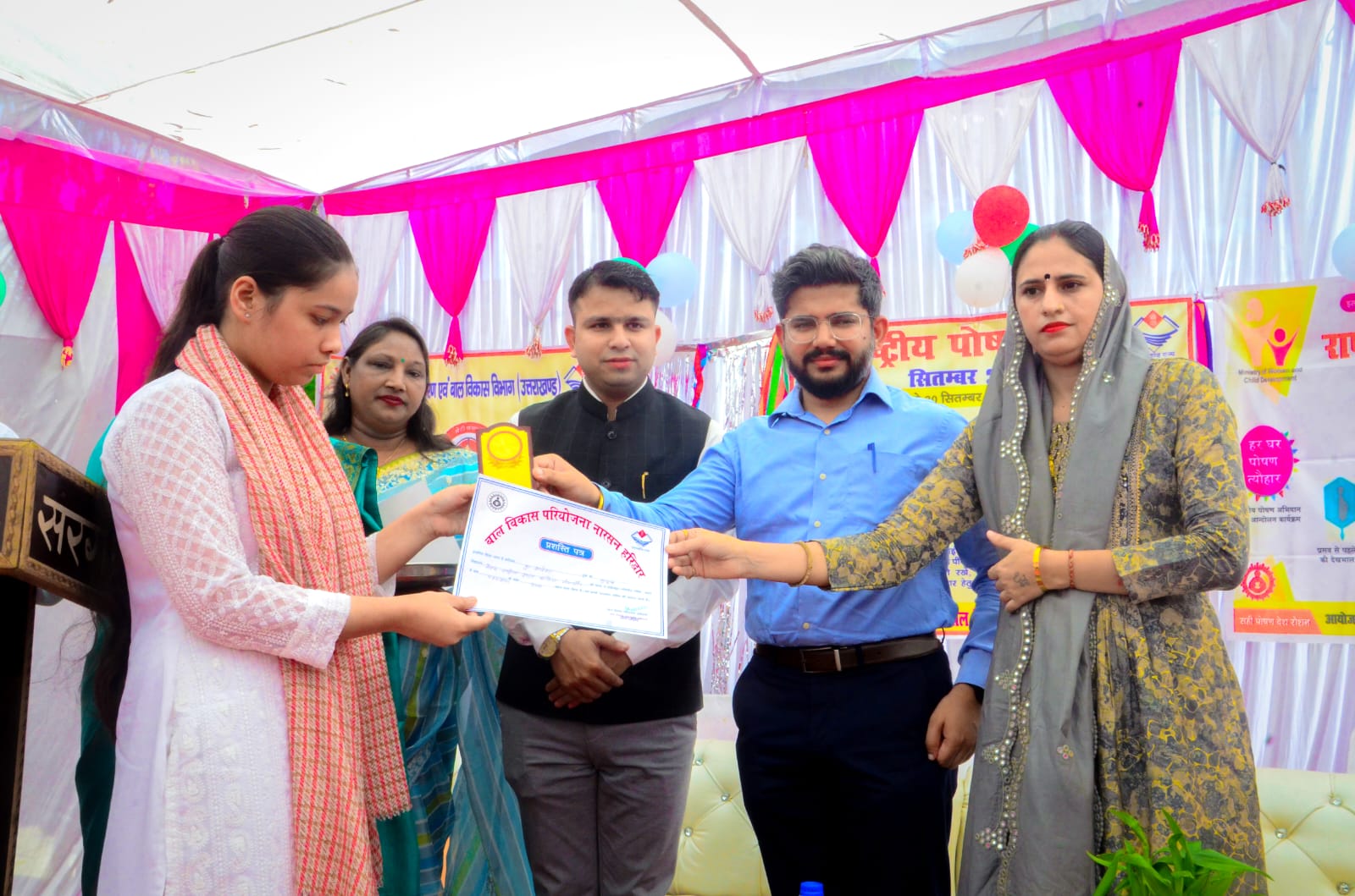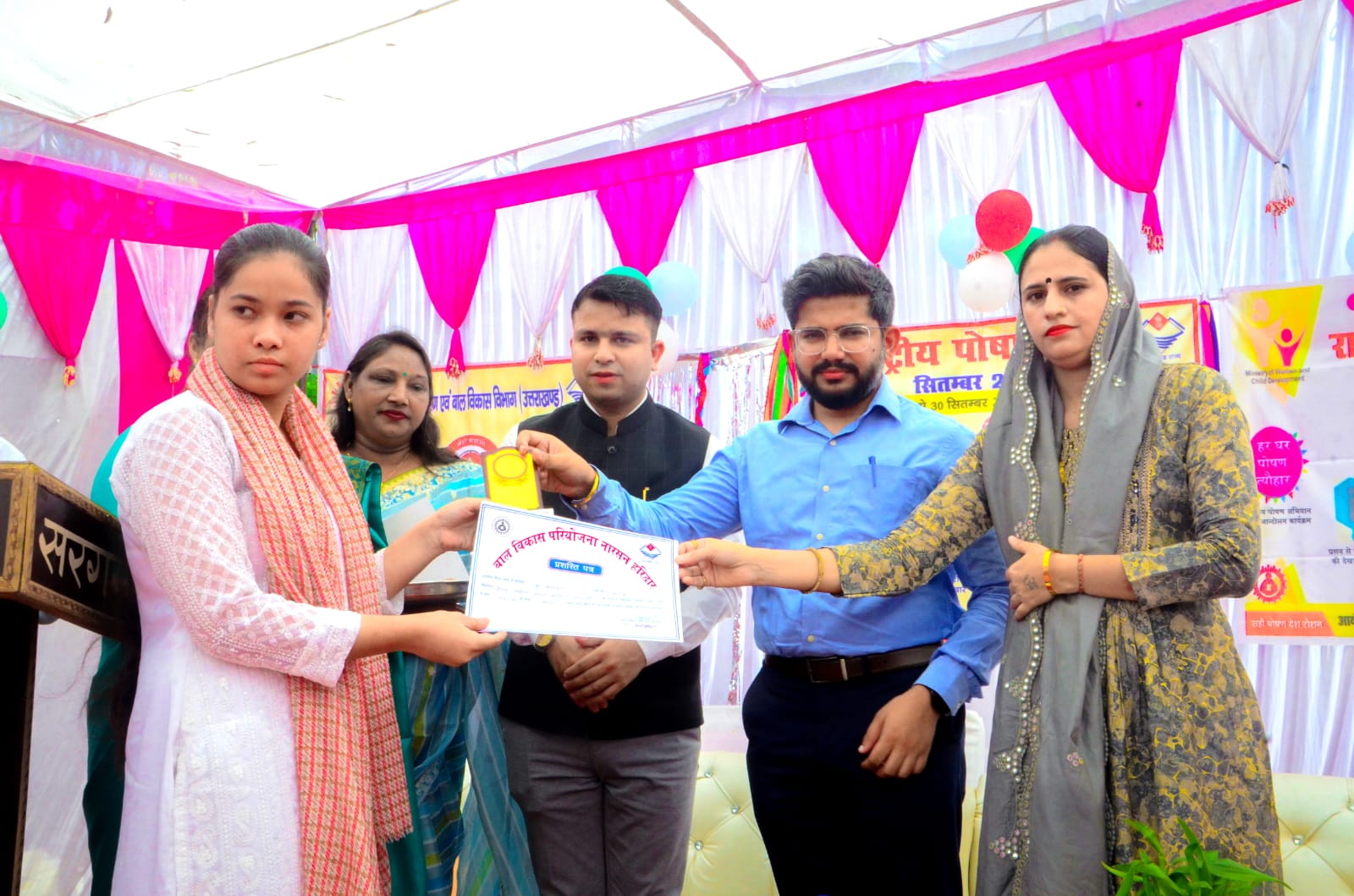 बाल विकास परियोजना अधिकारी सोनू कुमार द्वारा कार्यक्रम की जानकारी दी गई। अतिथियों के द्वारा 21 गर्भवती  महिलाओं की गोद भराई की गई। पांच बच्चों का अन्नप्राशन किया गया। बालिका जन्मोत्सव के अंतर्गत पांच बालिकाओं को वैष्णवी किट दी गई। 6 महिलाओं को महालक्ष्मी किट दी गई। ब्लॉक नारसन में  कक्षा 10 में प्रथम स्थान प्राप्त करने वाली तीन बालिकाओं को प्रशस्ति पत्र व ट्राफी देकर सम्मानित किया गया। ज्वाइंट मजिस्ट्रेट रुड़की अभिनव शाह के द्वारा के द्वारा सभी को पोषण की शपथ दिलाई गई। पोषण शपथ के साथ ही हस्ताक्षर अभियान में अतिथियों के द्वारा हस्ताक्षर किए गए।
