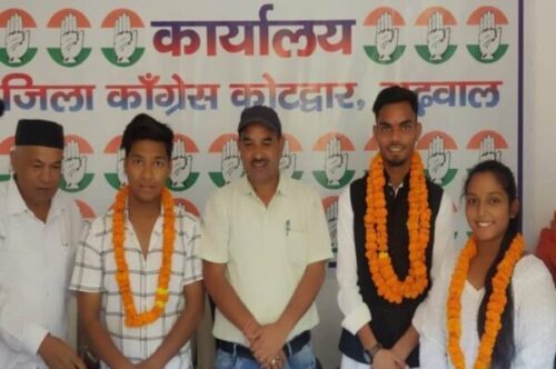 कोटद्वार। डॉ पीतांबर दत्त बड़थ्वाल राजकीय महाविद्यालय, कोटद्वार में छात्र संघ चुनाव के लिए एनएसयूआइ के घोषित प्रत्याशियों का जिला कांग्रेस कार्यालय में पार्टी कार्यकर्ताओं ने स्वागत किया । एनएसयूआई की ओर से इस बार छात्र संघ चुनाव में मन्दीप को अध्यक्ष, खुशी कंडवाल को विवि प्रतिनिधि, अमीषा बुड़ाकोटी को उपाध्यक्ष, शिवांशु शाह को सचिव, साहिल सिंह बिष्ट को सहसचिव और अमित काला को कोषाध्यक्ष पद पर प्रत्याशी बनाया गया है। मौके पर कांग्रेस पदाधिकारियों ने सभी प्रत्याशियों को जीत के लिए शुभकामनाएं प्रेषित की। कार्यक्रम में जिलाध्यक्ष विनोद डबराल, वरिष्ठ उपाध्यक्ष वीरेंद्र सिंह रावत एवं बलबीर सिंह रावत, मौ. स्वाले, शिवम भूषण शाह, प्रवेश रावत, अमितराज सिंह और विजय नेगी सहित कई कार्यकर्ता मौजूद रहे।