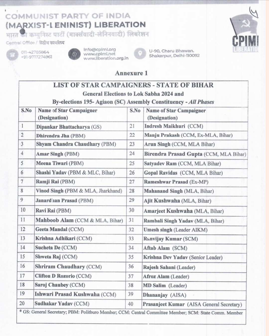 अगियाँव विधानसभा क्षेत्र के चर्चित विधायक कॉमरेड मनोज मंजिल को एक झूठे मामले में फंसाए जाने के कारण, पार्टी इस विधानसभा सीट पर उपचुनाव में भी मजबूत दावेदारी कर रही है. उन्होंने कहा कि बिहार में भाकपा (माले) सबसे बड़ी वामपंथी पार्टी है जो सड़क से सदन तक गरीब मजदूरों, किसानों, दलितों, महिलाओं, अल्पसंख्यकों और युवाओं के सवालों पर जुझारू संघर्षों के लिए पहचानी जाती है.