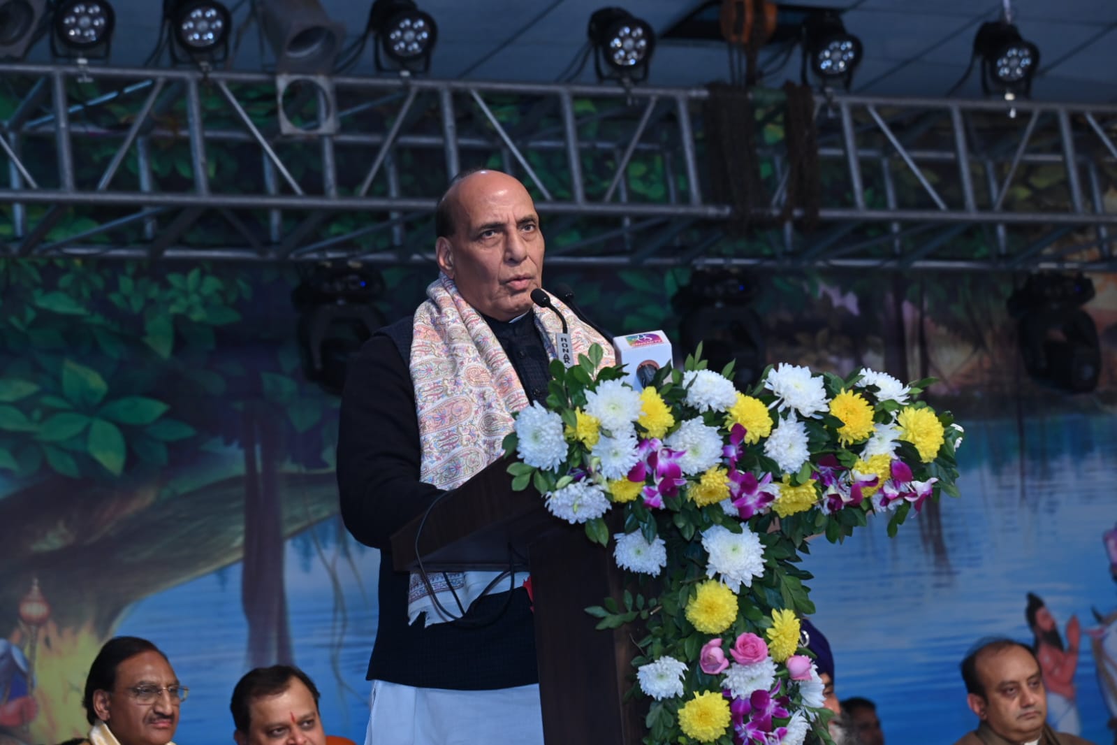 रक्षा मंत्री राजनाथ सिंह ने कहा कि राजा अपना काम ठीक से करे, इसकी समीक्षा करने का अधिकार साधु-सन्तों को ही है। उन्होंने कहा कि जब कोई सन्त बनता है तो वह सबसे पहले अहम को त्यागते हुये वयम् को अपनाता है तथा वह जो भी कार्य करता है चराचर जगत के लिये करता है तथा पूरे विश्व को अपना परिवार मानता है। इसलिये बसुधैव कुटुम्बकम की भावना को देने का श्रेय संन्यासियों को है। प्रधानमंत्री नरेन्द्र मोदी का उल्लेख करते हुये रक्षा मंत्री राजनाथ सिंह ने कहा कि उनके नेतृत्व में भारतीय सांस्कृतिक विरासत के उन्नयन एवं समृद्धि के लिये निरन्तर कार्य किये जा रहे हैं, जिनमें काशी कारीडोर, उज्जैन, अयोध्या में राम मन्दिर, केदारनाथ मन्दिर परिसर में कार्य कराया जाना आदि प्रमुख हैं।