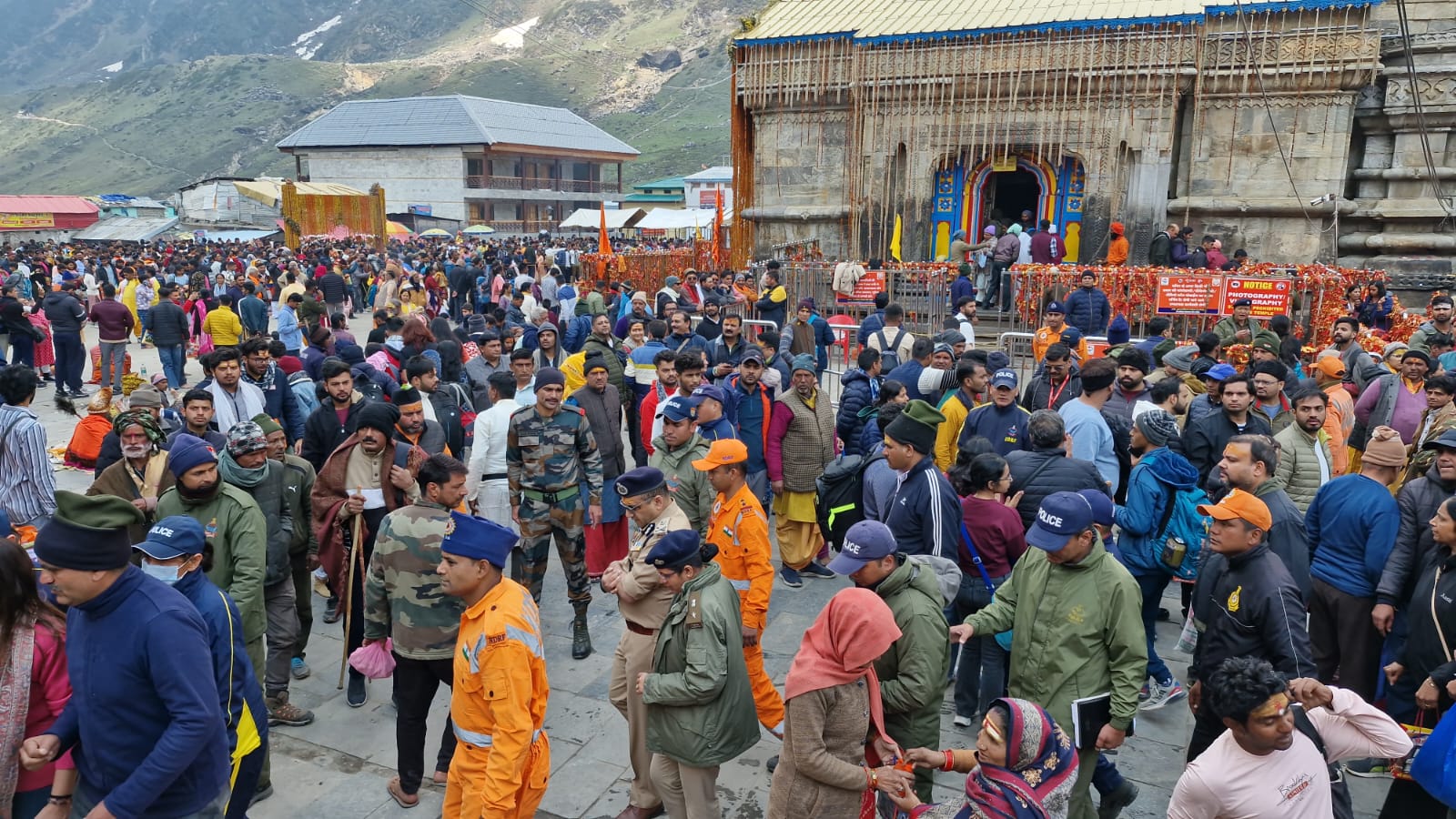 पुलिस महानिदेशक उत्तराखण्ड अभिनव कुमार ने कहा कि आज चार धाम यात्रा के अन्तर्गत केदारनाथ धाम के कपाट खुले हुए आज दसवां दिन है। इस अवसर यात्रा व्यवस्थाओं को देखने मैं स्वयं आया था। इस बार अभी तक जो भीड़ आई है प्रतिदिन तीस हजार से भी अधिक श्रद्धालु दर्शन करके जा रहे हैं। निश्चित रूप से यहां पर जो भी मंदिर व्यवस्था से जुड़ी हुई सारी एजेंसियां हैं, बद्री केदार मंदिर समिति, जिला प्रशासन, पुलिस, एनडीआरएफ एसडीआरएफ, आईटीबीपी, स्वास्थ्य विभाग, पर्यटन विभाग, सूचना विभाग है, सारी टीमें जिस तालमेल के साथ कार्य कर रही हैं, एक बहुत अच्छा उदाहरण है। आने वाले दिनों में भीड़ के दबाव को देखते हुए हमारी कोशिश रहेगी कि यहां पर जो भी पुलिस व्यवस्था है, उसको और सुदृढ़ किया जाए जिससे यात्रियों के लिए हम और बेहतर से बेहतर व्यवस्था कर सकें। इस अवसर पर पुलिस अधीक्षक डाॅ. विशाखा अशोक भदाणे, पुलिस उपाधीक्षक केदारनाथ यात्रा अविनाश वर्मा, चौकी प्रभारी केदारनाथ मंजुल रावत सहित पुलिस, पीएसी, एसडीआरएफ, एनडीआरएफ के जवान मौजूद रहे।