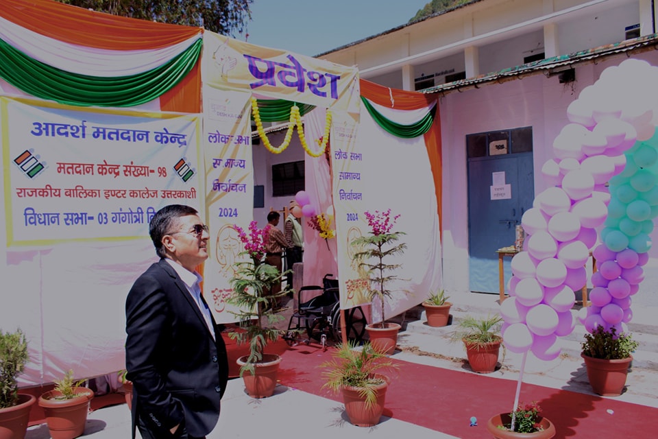 उत्तरकाशी : लोक सभा सामान्य निर्वाचन 2024 के लिए उत्तरकाशी जिले में मतदान की प्रक्रिया कड़े सुरक्षा इंतजामों के बीच शांतिपूर्वक जारी है। जिलाधिकारी/ जिला निर्वाचन अधिकारी डॉ. मेहरबान सिंह बिष्ट ने राजकीय बालिका इंटर कॉलेज स्थित आदर्श मतदान केन्द्र में जाकर अपना वोट डाला। नगर क्षेत्र में स्थित राजकीय स्नातकोत्तर महाविद्यालय के दिव्यांग प्रबंधित बूथ, बालिका इंटर कॉलेज के आदर्श बूथ और कीर्ति इंटर कॉलेज के महिला प्रबंधित बूथ का भी निरीक्षण किया। दिव्यांग और महिला मतदानकर्मियों का उत्साहवर्द्धन करते हुए कहा कि चुनाव की प्रक्रिया में उनका योगदान लोकतंत्र के सशक्तिकरण का प्रतीक है। मतदान केन्द्रों के निरीक्षण के दौरान बूथों पर मतदाताओं की सुविधा के लिए की गई व्यवस्थाओं का भी जायजा लिया और अनेक मतदाताओं से भी इस बावत फीडबैक लिया। मतदाताओं ने बूथों पर की गई व्यवस्थाओं की सराहना करते हुए कहा कि चुनाव आयोग द्वारा उपलब्ध कराई गई सुविधाओं से लोगों को मतदान करने में काफी सहूलियत मिली है।