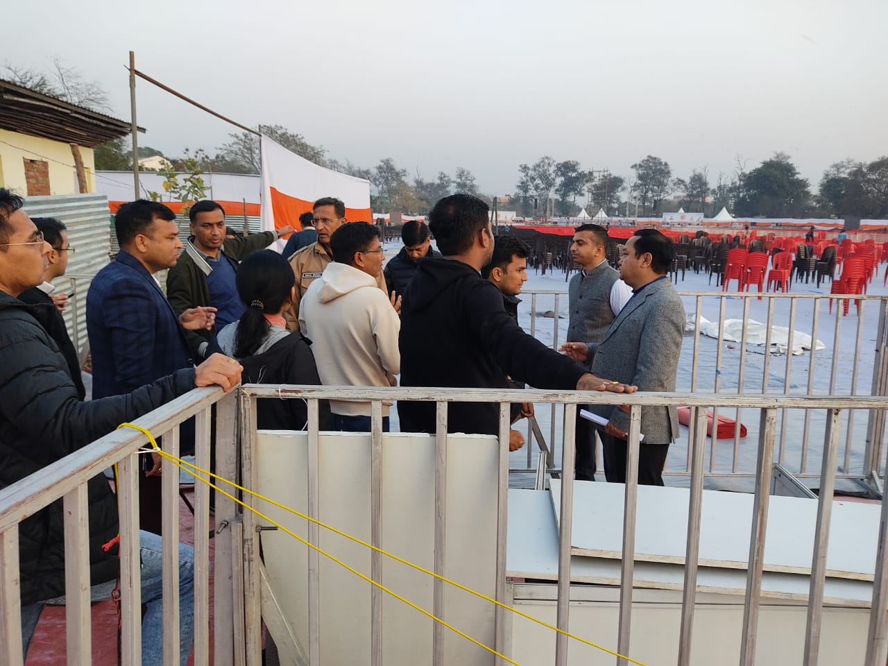 हरिद्वार : जिलाधिकारी धीराज सिंह गर्ब्याल एवं वरिष्ठ पुलिस अधीक्षक प्रमेन्द्र डोभाल ने रविवार को दिनांक 12 फरवरी,2024 को ऋषिकुल मैदान में वृहद रूप से आयोजित होने वाले मुख्यमंत्री के ’’नारी शक्ति महोत्सव’’ की तैयारियों का जायजा लिया। जिलाधिकारी धीराज सिंह गर्ब्याल ने सम्बन्धित अधिकारियों के साथ मुख्यमंत्री के ’’नारी शक्ति महोत्सव’’ के वृहद रूप से आयोजित किये जाने की तैयारियों के सम्बन्ध में पूरे ऋषिकुल मैदान का भ्रमण किया तथा मंच, पण्डाल, कन्या पूजन, रोड शो, विभिन्न विभागों के लगाये गये पण्डाल आदि का फाइनल निरीक्षण करते हुये अधिकारियों को दिशा-निर्देश दिये। उन्होंने इस मौके पर मुख्यमंत्री द्वारा जिन-जिन योजनाओं का शिलान्यास/उद्घाटन किया जाना है, के सम्बन्ध में की गयी तैयारियों का भी जायजा अधिकारियों से लिया, जिस पर अधिकारियों ने बताया कि जिन योजनाओं का शिलान्यास व उद्घाटन किया जाना है, उसकी पूरी तैयारी कर ली गयी है। डीएम धीराज सिंह गर्ब्याल ने गाड़ियों की पार्किंग, पूरा रूट प्लान आदि के सम्बन्ध में भी अधिकारियों से विस्तृत जानकारी ली।