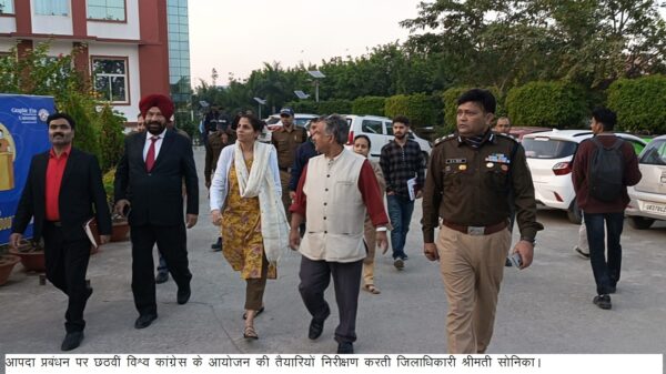 देहरादून : आपदा प्रबंधन पर छठवीं विश्व सम्मेलन का आयोजन की तैयारियों के सम्बन्ध में जिलाधिकारी सोनिका ने आयोजन स्थल ग्राफिकएरा का निरीक्षण कर तैयारियों का जायजा लिया। जिलाधिकारी ने ग्राफिकएरा कालेज/यूनिवर्सिटी में कार्यक्रम स्थल पर आयोजित होेने वाले कार्यक्रम में समस्त व्यवस्थाओं को चाक चौबन्ध बनाने के निर्देश दिए। उन्होंने आयोजन स्थल पर संचालित निर्माण कार्यों को यथा शीघ्र पूर्ण करने के निर्देश दिए इसके लिए अतिरिक्त कार्यक्रम सम्मिलित होने वाले मानुभवों की सिटींग एवं सुरक्षा व्यवस्था आदि सभी पहलुओं ध्यान में रखकर व्यवस्था बनाने के निर्देश दिए।