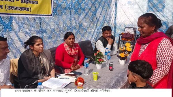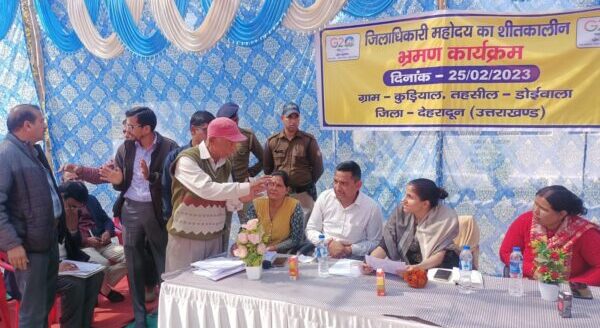 देहरादून : जिलाधिकारी सोनिका ने आज ग्राम कुड़ियाल (थानो) में भ्रमण के प्राथमिक विद्यालय कुड़ियाल में जनमानस की समस्याओं को सुना। इस दौरान 29 शिकायतें प्राप्त हुई, जिनमें अधिकतर शिकायतों का मौके पर ही निस्तारण किया गया। ग्रामवासियों ने जिलाधिकारी ने उनके गांव में आने पर आभार व्यक्त किया तथा मांगल गीत से जिलाधिकारी का स्वागत किया। क्षेत्रवासियों की राजकीय प्राथमिक विद्यालय कुडियाल से प्रकाशपंत मार्ग तक 800 मीटर सड़क निर्माण हेतु वन क्षेत्र में स्वीकृति की मांग पर जिलाधिकारी ने स्वीकृत शासनादेश से अवगत कराने पर क्षेत्रवासियों ने राज्य सरकार एवं जिलाधिकारी का आभार व्यक्त किया। जिलाधिकारी ने उपस्थित अधिकारियों कों निर्देशित किया भ्रमण कार्यक्रम जो शिकायतें प्राप्त हुई है। उन पर संज्ञान लेते हुए सम्बन्धित विभाग अपनी-अपनी शिकायतों का समयबद्धता से निस्तारण करते हुए निस्तारण आख्या प्रस्तुत करें। प्राप्त शिकायतों में राजस्व, विद्युत, समाज कल्याण, बाल विकास, नलकूप खण्ड, सिंचाई, लघु सिंचाई, विद्युत, स्वास्थ्य, परिवहन, वन, दूरसंचार निगम लि0, पर्यटन,लोनिवि,जल संस्थान, पेयजल निगम आदि विभागों से सम्बन्धित प्राप्त हुई।