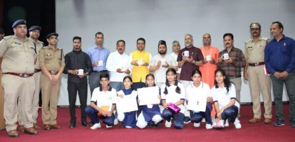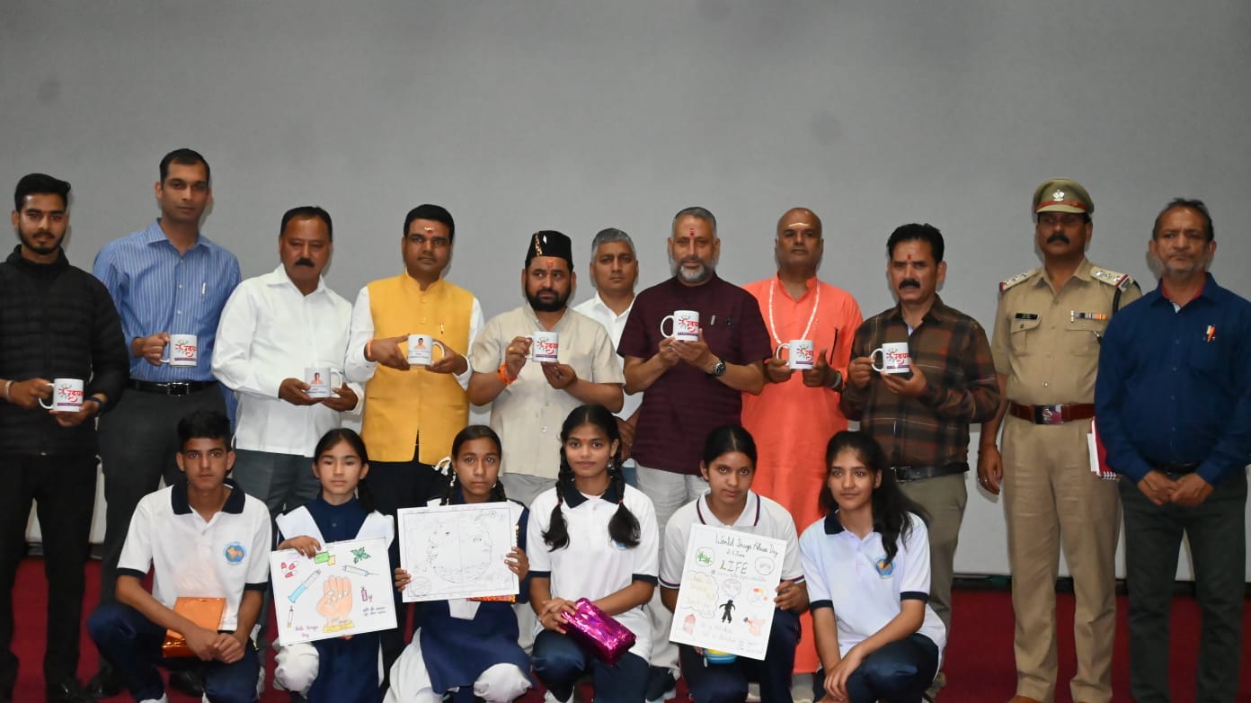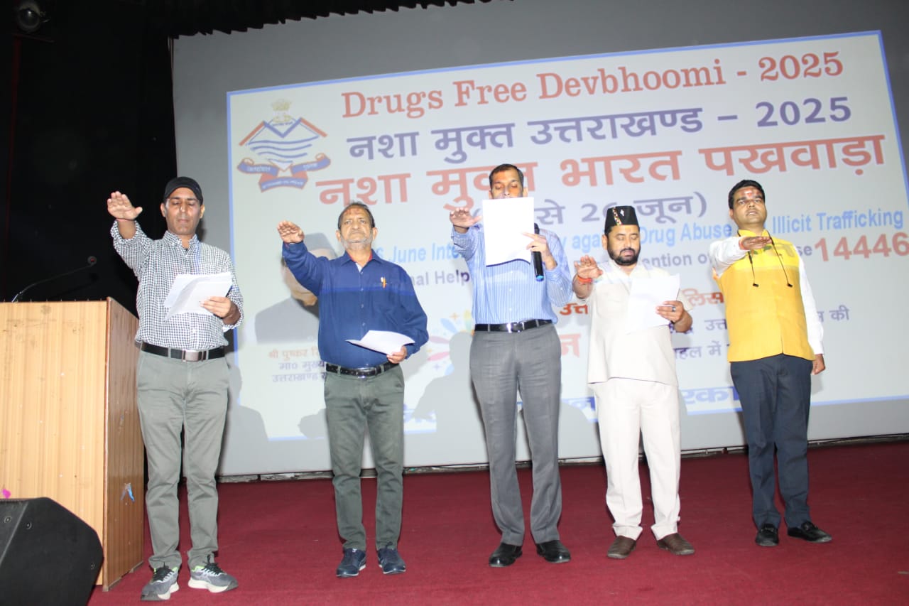 उत्तरकाशी (कीर्ति निधि सजवाण): अन्तर्राष्ट्रीय ड्रग्स निरोधी दिवस के अवसर पर उत्तरकाशी पुलिस व प्रशासन के तत्वधान मे कलेक्ट्रेट परिसर उत्तरकाशी, ऑडिटोरियम मे नशा मुक्ति कार्यक्रम आयोजित किया गया। कार्यक्रम मे बतौर मुख्य अतिथि विधायक गंगोत्री सुरेश चौहान एवं जिलाधिकारी उत्तरकाशी अभिषेक रुहेला के द्वारा उत्तरकाशी पुलिस, आईटीबीपी मातली, जिला प्रशासन के अधिकारी/कर्मचारी, स्कूल/कॉलेज के छात्र/छात्राओं एवं एनसीसी कैडेट को नशा एवं ड्रग्स विरोधी शपथ दिलाई गयी, कार्यक्रम मे नशा मुक्त भारत पखवाडा के अन्तर्गत उत्तरकाशी पुलिस द्वारा आयोजित करायी गयी चित्रकला एवं भाषण प्रतियोगिता मे अब्बल रहे प्रतिभागियों(छात्र-छात्राओं)को गंगोत्री विधायक एवं जिलाधिकारी उत्तरकाशी द्वारा सम्मानित किया गया, चित्रकला प्रतियोगिता में प्रथम स्थान बागेश्वरी व द्वितीय एवं तृतीय स्थान पर क्रमशः सिमरन व मलिका रही, भाषण प्रतियोगिता में प्रथम, द्वितीय व तृतीय स्थान पर क्रमशः सोहानी, आदित्य व तमन्ना रही।