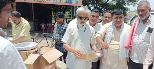 रुड़की : बढ़ती हुई गर्मी के प्रकोप को देखते हुए जनहित में वरिष्ठ आयुर्वेद चिकित्सक भाजपा नेता व समाजसेवी वैद्य टेक वल्लभ ने गंगा दशहरा के अवसर पर ग्राम इमली खेड़ा चौराहे पर स्वनिर्मित शरबत अमृत बेल का निशुल्क शिविर लगाया और हजारों राहगीरों ने औषधि शरबत सेवन का लाभ उठाया । वैद्य टेक वल्लभ ने बताया कि कि यह स्वानुभूत औषधि शरबत है जिसमें गिलोय सहित आने को दुर्लभ जड़ी बूटियां है कोई एसेंस कलर सोडा या गैस नहीं है गर्मी से राहत देने के लिए संक्रमण से बचने के लिए रोग प्रतिरोधक क्षमता बढ़ाने के लिए सर्वोत्तम योग है बढ़ती हुई गर्मी के प्रकोप को देखते हुए मां गंगा के अवतरण दिवस गंगा दशहरा के अवसर पर राहगीरों की सेवा के लिए यह शिविर लगाया गया है । इस शिविर में राजीव सिंगला विपिन सिंगल डॉ सरजीत सिंह मनोज सैनी रजनीश सैनी पप्पू कश्यप आदि और उनके बच्चों ने बहुत सहयोग किया।