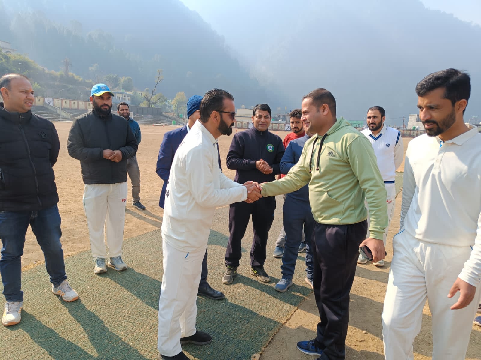शुक्रवार को मनेरा स्टेडियम में स्वामी विवेकानंद की जयंती के अवसर पर जिला पंचायत, पुलिस, कलेक्ट्रेट एवं मैत्री प्रेस क्लब उत्तरकाशी के बीच मैत्री मैच का आयोजन किया गया। मैच का शुभारंभ जिला पंचायत अध्यक्ष दीपक बिजल्वाण, मुख्य विकास अधिकारी जय किशन, पुलिस अधीक्षक अर्पण यदुवंशी, उपजिलाधिकारी वृजेश तिवारी, पुलिस उपाधीक्षक अनुज कुमार, कोतवाली प्रभारी दिनेश कुमार,अजय सिंह , प्रेस क्लब अध्यक्ष चिरंजीव सेमवाल ने खिलाड़ियों से परिचय प्राप्त कर किया। पुलिस अधीक्षक अर्पण यदुवंशी के नेतृत्व में उतरी पुलिस की टीम ने टॉस जीत कर पहले बल्लेबाजी करने का निर्णय लिया। टीम शानदार 113रनों की बदौलत पुलिस की टीम ने 12 ओवर में 7 विकेट खोकर 113 रन बनाए। वहीं कलेक्ट्रेट की टीम ने 103 रन बनाए और 10 रनों से हार का सामना करना पड़ा। बाद में जिला पंचायत इलेवन प्रेस क्लब के बीच मुकाबला हुआ जिसमें प्रेस क्लब ने टॉस जीतकर पहले बल्लेबाजी की और शुरुआत में मैच काफी रोचक रहा प्रेस क्लब उत्तरकाशी की टीम ने महज़ आठ ओवर में 56 रन बनाए जबकि जिला पंचायत ने अपने शानदार बल्लेबाजी और गेंदबाजी के बदौलत मैच जीते ने में सफल रहे।