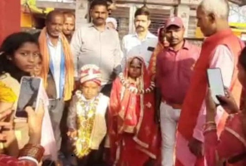 इसी दौरान, मढ़ौरा के भावलपुर के ही रहने वाले शैलेश सिंह श्याम और रेणु के जीवन में फरिश्ता बनकर आए। वे किसी काम से चंचौरा गए थे, जब श्याम के परिवारवालों ने उनसे शादी की चर्चा की। शैलेश को उसी वक्त रेणु का ख्याल आया। फिर क्या था, उन्होंने दोनों परिवारवालों से बातचीत कर शादी की चर्चा की। शादी की बात शुरू हुई तो बीच में दोनों परिवार की अलग-अलग जाति अडंगा बन गई। तभी परिवारवालों ने दोनों की खुशियों के लिए जातीय बंधन तोड़ रिश्ता जोड़ने का फैसला किया और अंतरजातीय शादी के लिए राजी हो गए। उसके बाद अगले सप्ताह ही शुक्रवार को शुभ मुहूर्त में दोनों शादी के बंधन में बंधने मढ़ौरा से प्रसिद्ध गढ़देवी मंदिर पहुंचे। साढ़े तीन फीट की दुल्हनियां और तीन फीट के दूल्हे को देख आसपास के लोगों की भीड़ जमा हो गई। वैदिक मंत्रोच्चार के साथ गढ़देवी मंदिर में दोनों की शादी संपन्न हुई। इस शादी में पहुंचे सैकड़ों लोगों ने अपने मोबाइल में इस अनोखी शादी के दृश्य को कैद किया।