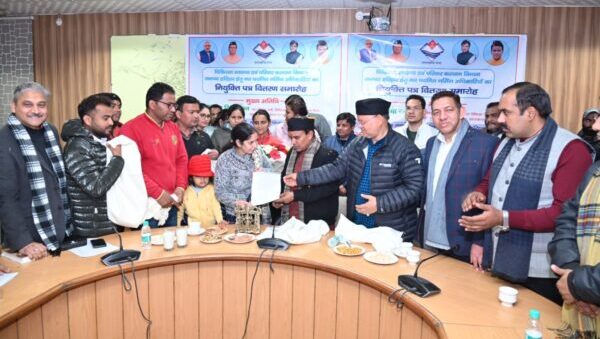 हरिद्वार :  चिकित्सा स्वास्थ्य एवं चिकित्सा शिक्षा, सहकारिता, उच्च शिक्षा, विद्यालयी शिक्षा एवं संस्कृत शिक्षा मंत्री डॉ. धन सिंह रावत ने शनिवार को मेला नियंत्रण भवन(सीसीआर) में चिकित्सा स्वास्थ्य एवं परिवार कल्याण विभाग द्वारा नव चयनित नर्सिंग अधिकारियों हेतु आयोजित नियुक्ति पत्र वितरण समारोह में प्रतिभाग किया। उन्होंने इस मौके पर जनपद हरिद्वार के लिये नव-चयनित नर्सिंग अधिकारियों-रेचल ब्राउनिंग, शकुन्तला आदि को नियुक्ति पत्र सौंपे।