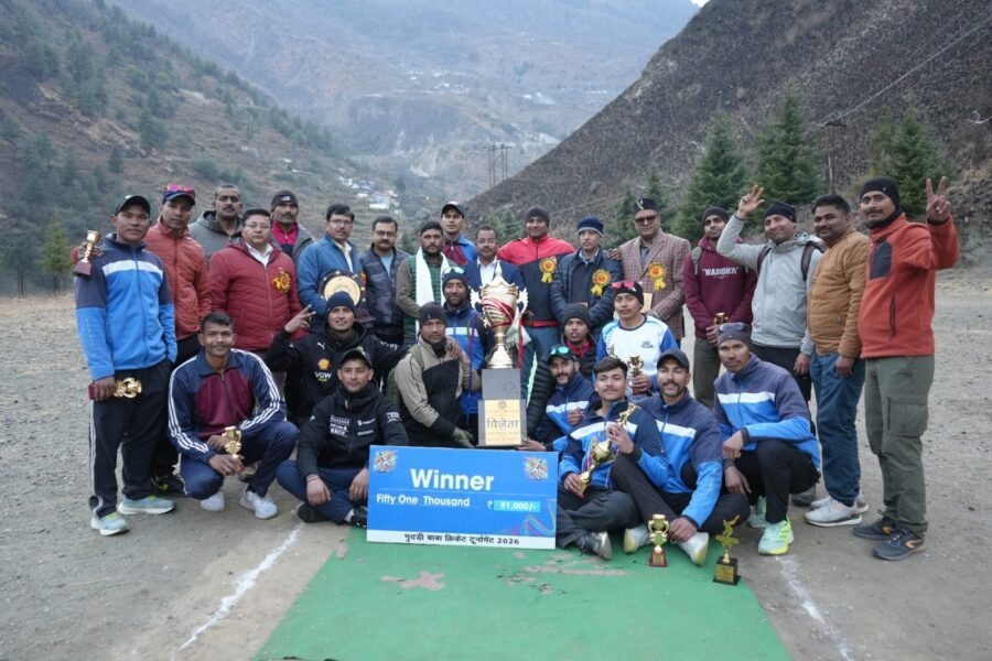 ​तपोवन। तपोवन के भंगुल में आयोजित भव्य क्रिकेट टूर्नामेंट का समापन एक बेहद उतार-चढ़ाव भरे मुकाबले के साथ हुआ, जिसमें ITBP औली ने रविग्राम जोशीमठ को 7 रनों से शिकस्त देकर खिताबी जीत हासिल की। टॉस जीतकर पहले बल्लेबाजी करते हुए ITBP औली ने निर्धारित 20 ओवरों में 7 विकेट पर 200 रनों का विशाल स्कोर खड़ा किया। चुनौतीपूर्ण लक्ष्य का पीछा करने उतरी रविग्राम की टीम ने भी कड़ा संघर्ष किया, लेकिन अंततः 20 ओवरों में 7 विकेट खोकर 193 रन ही बना सकी। फाइनल में शानदार प्रदर्शन के लिए महिपाल रावत को ‘मैन ऑफ द मैच’ चुना गया, जबकि रजत यादव को उनकी बेहतरीन बल्लेबाजी के लिए ‘मैन ऑफ द सीरीज’ और ‘बेस्ट बैट्समैन’ के खिताब से नवाजा गया। इसके अतिरिक्त विपुल नेगी को ‘बेस्ट बॉलर’ और ताशी नामगयाल को ‘बेस्ट फील्डर’ का पुरस्कार मिला। कुल 32 टीमों की भागीदारी वाले इस टूर्नामेंट के समापन अवसर पर स्थानीय गणमान्य व्यक्तियों और खेल प्रेमियों ने खिलाड़ियों का उत्साहवर्धन किया।