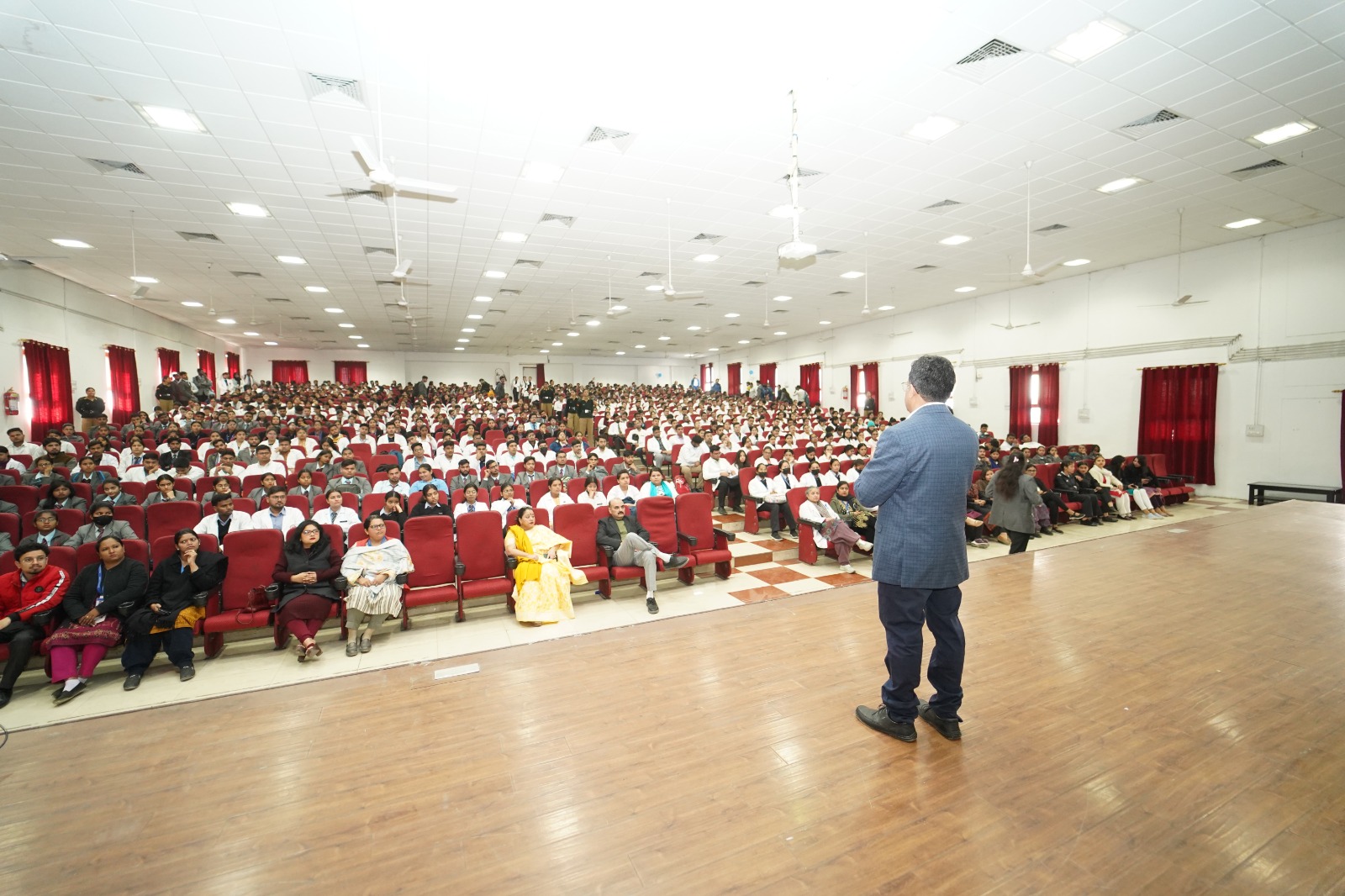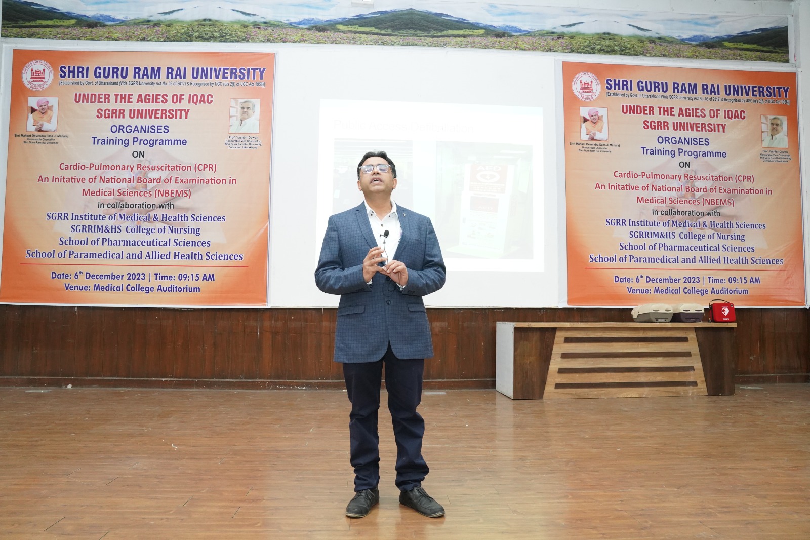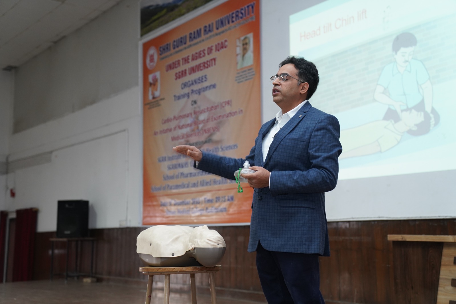 देहरादून। श्री गुरु राम राय विश्वविद्यालय (एसजीआरआरयू) में नैशनल बोर्ड ऑफ इग्जैमिनेशन इन मैडिकल साइंसेज के सहयोग व विश्वविद्यालय के आई.क्यू.ए.सी. सैल, स्कूल ऑफ मेडिकल, काॅलेज ऑफ नर्सिग, स्कूल ऑफ फार्मास्यूटिकल साइंसेज और स्कूल ऑफ पैरामैडिकल एण्ड एलाइड हैल्थ साइंसेज ने कार्डियोपल्मोनरी रिसससाईटेशन(सी.पी.आर.) के महत्व को उजागर करने हेतु सेमिनार का आयोजन किया। इस सेमिनार में विश्वविद्यालय के सभी 11 स्कूलो के 1,200 से भी अधिक छात्र-छात्राओं ने उत्साहपूर्वक प्रतिभाग किया। कार्यक्रम का शुभारंभ एनेस्थीसिया के विभागाध्यक्ष डाॅ. निशिथ गोविल और डाॅ. कुमार पराग द्वारा संयुक्त रूप से किया गया।